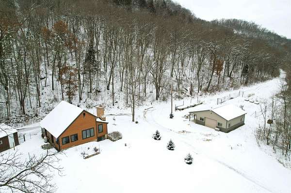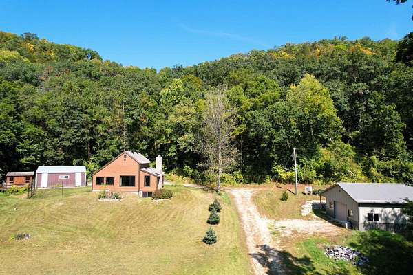 Discover 25+ WI Driftless Region acres surrounding this extensively updated, cozy, south-facing cabin-style home! Enjoy real privacy on a dead-end, township-maintained road. The home's main level offers comfortable living with stunning fieldstone fireplace and soapstone insert in the great room. Lower level has a wood stove, full bath, laundry area, bonus room, and ample storage. Outside features a spacious yard, 2 meadows, hardwood forest with rock outcrops, year-round creek, and an amazing wooded ridgetop. Includes a 32x30 shop, 2 car garage, newer roof and gutters, fenced garden, raised beds, medicinal and culinary herbs, perennials and berries, dual Ecoflow Pro power backup system, and a deck with cabana. Privacy, modern updates, and natural beauty! Private property, no drive-ins.