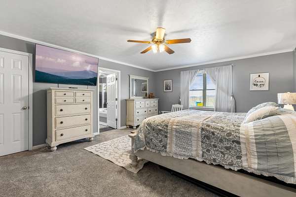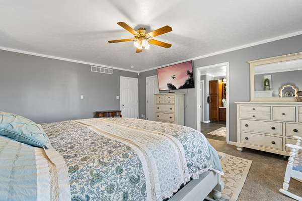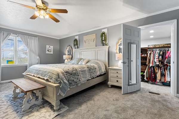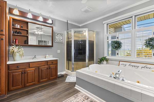 - Ceiling Fan(s), Central Vacuum, Eat-In Kitchen, Primary Downstairs, Soaking Tub, Walk-In Closet(s)