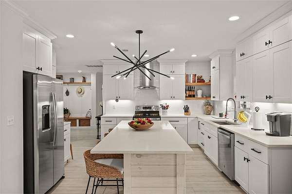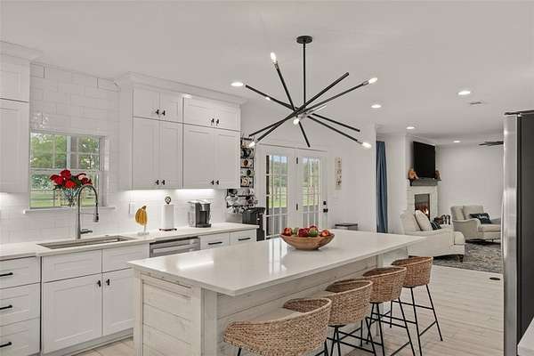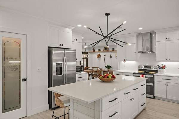 - Decorative Lighting, Double Vanity, Kitchen Island, Open Floorplan, Pantry, Walk-In Closet(s)
