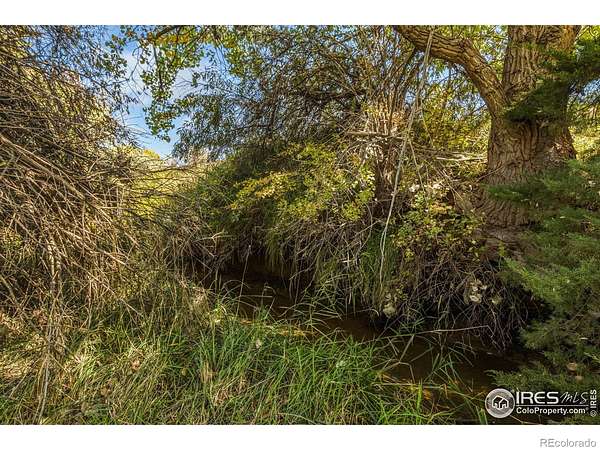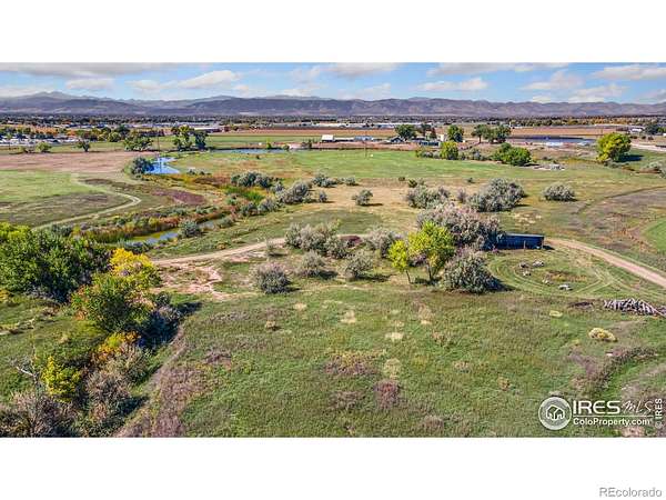Incredibly rare opportunity to own 36 acres just outside Fort Collins city limits with a private access easement. Enjoy the freedom of no HOA and no covenants. A 300-foot pond highlights the west side of the property, while Boxelder Creek meanders along the east. A Gallery well has been installed, and the impressive 50' x 80' shop offers 16' eaves, two 14' x 14' overhead doors, and a 6" concrete slab floor. The property attracts wildlife including turkeys, ducks, geese, and deer, and showcases spectacular views of Longs Peak, Mount Meeker, and the Rocky Mountain Range. The road and driveway are well maintained, with an 18" recycled asphalt pad in front of the shop. Additional features include a loafing shed and hundreds of mature evergreen and deciduous trees. No utilities have been paid for or installed. A 40' access easement allows for both access and utility installation.