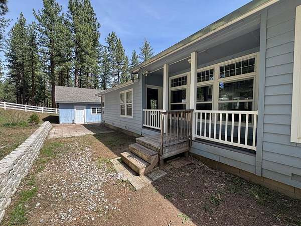 Experience the perfect blend of country serenity and modern living at 4678 Portola McLears Rd. This 2440 sq ft custom 3-bedroom, 3-bath home is thoughtfully updated and positioned on 6.73 expansive acres, including a 1-acre vinyl fenced pasture ideal for horses, gardens, or outdoor projects. Inside, durable LVP laminate flooring and Corian counters in the kitchen and baths exude quality and style. The kitchen features an island, gas cooktop, stainless electric wall oven, microwave, and refrigerator, making it the heart of the home. Sunlight pours in through oversized windows in the living and dining areas, bringing the outdoors in. Step onto the covered deck for dining or entertaining, and enjoy year-round comfort with forced air propane heat, a wood stove in the living room, and central A/C. The washer and dryer in the utility room are also included. The main suite is a private retreat with double sinks, a soaking tub, and a separate shower. Additional amenities include wiring for a whole-home generator, a versatile 25'x25' storage building recently used as a game room, and generous outdoor space for gardening, play, or relaxation. Close to town yet secluded. Photos can't do it justice, so much more to see here, call for a personal tour.