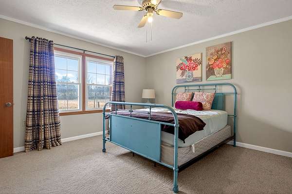 This charming 3-bedroom, 2-bath home offers approximately 2,000 square feet of comfortable living space on +/- 1 acre of land. The main level is designed for easy everyday living, featuring a spacious living room, kitchen, laundry area, and primary suite all conveniently located on one floor. The expansive deck offers an ideal spot to enjoy peaceful mornings, unwind in the evenings, and take in beautiful sunset views. The walk-out basement provides additional space with two bedrooms, each offering large walk-in closets and connected by a Jack-and-Jill bathroom, creating a comfortable layout for family members or visiting guests. An unfinished basement area with its own separate access provides excellent potential for additional storage, a workshop, home gym, or future expansion.All kitchen appliances, along with the washer and dryer, will remain with the home. A storage building is also included, adding extra convenience and functionality for the next owner. The 6.5+/- acres surrounding the home are being surveyed off of this parcel and will not convey with this sale.