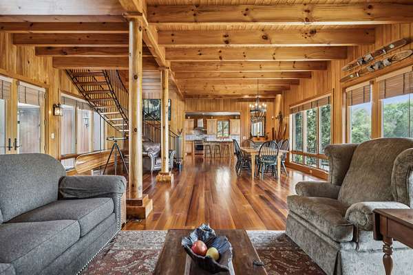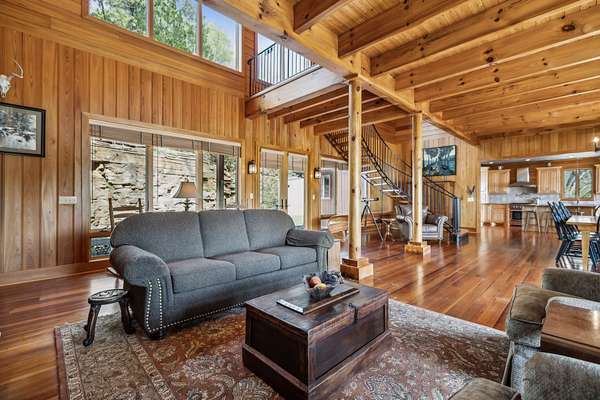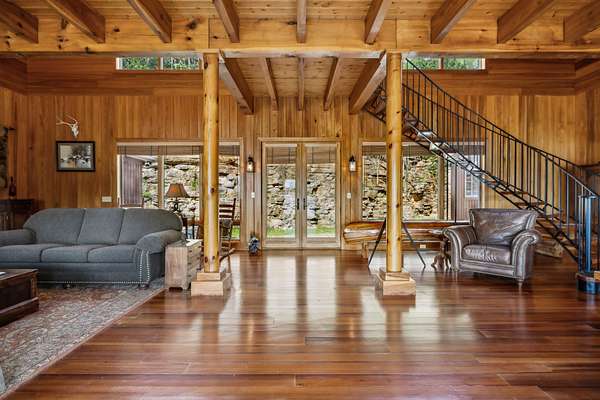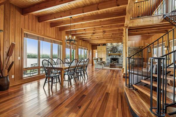 Outdoorsman's Dream! Ralph Lauren inspired Tennessee riverfront home! This listing is for the home, boat barn, and dock on 1.5 acres. Buyer responsible for cost of updated survey and legal description to parcel 1.5 acres from the whole tract. More acreage available to purchase. Cypress floors and soaring beams set against a sweeping iron staircase bring Montana vibes to this picturesque river estate. Property includes a 3 bay dock plus a 3 bay 30x50 shop. Western views of the river make for a spectacular sunset! This property offers privacy perched above the Tennessee River, while being a short 5 minute drive from friends in Peters Landing. 18 minutes from Clifton Marina by car. Spend a day on the water island hopping between candy visits to the Mermaid Marina, Riverstone Marina, or Clifton Marina. The beauty of the Tennessee River is that it can be enjoyed year round! Put the boat away in the fall and fill your nights with fire pits and s'mores during football season. Ring in the New Year with a water view! During low-tide you have your own beach in front of your house along Short Creek!. DO NOT VISIT THE HOME WITHOUT AN APPOINTMENT AND AN AGENT.