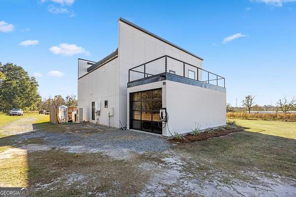 Modern Smart Home on 4.6 Acres near Moody AFB. Discover contemporary living on 4.6 pristine acres in Lowndes County. This smart home blends cutting-edge technology with exceptional durability, offering a private retreat that's built to withstand the elements while delivering modern comfort and style. Inside, sleek lines and a clean design create an effortless flow, enhanced by integrated smart features and high-end accessories throughout. Expansive windows fill the home with natural light and frame the beautiful surrounding views. Step outside to two walk-out upper-level deck patios, perfect for morning coffee, evening relaxation, or entertaining while overlooking the peaceful landscape. The landing provides a functional office space with floor to ceiling views, or it can be used as an additional loft-style bedroom. Located just minutes from Moody Air Force Base, this property offers both convenience and privacy-ideal for military personnel, commuters, or anyone seeking a modern rural lifestyle without sacrificing accessibility. A unique blend of innovation, design, and acreage, this home is ready for its next owner to enjoy. Home is outfitted with a state-of-the-art HVAC system, water filtration, EV charging station, and extreme durability in mind.