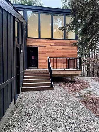 This beautiful Mid-Century Modern home is nestled along the Cannon River on nearly five acres, offering timeless design and natural beauty. Floor-to-ceiling windows in the family and dining rooms fill the space with abundant natural light, while the sunken living room with a wood-burning fireplace overlooks the river. Enjoy the updated wraparound deck--perfect for relaxing or entertaining. The interior has been freshly painted with new carpet throughout, and recent exterior updates include a new roof, siding, and garage door, ensuring both beauty and peace of mind. Your peaceful riverfront retreat awaits.