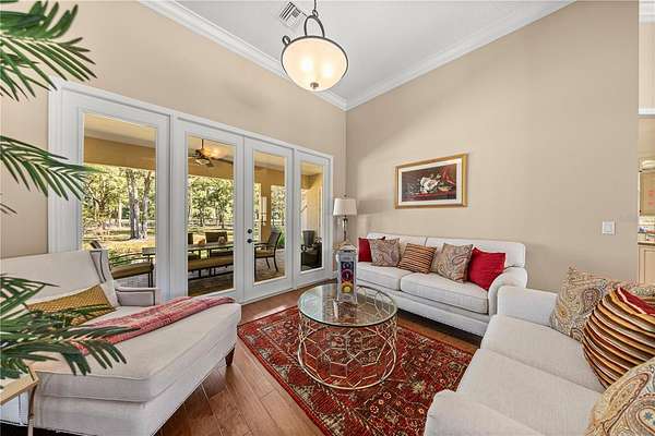 Exceptional opportunity in a premier, gated equestrian community located in the heart of Ocala's horse country. This beautifully appointed 4 BR 3.5 BA residence sits on 3 fenced acres dotted with lovely trees. Offered fully furnished for a true turnkey experience. Special features include a paver walkway to an outdoor seating area with fire pit, 3 car garage and a circular driveway. Enjoy refined finishes, privacy and the equestrian lifestyle just 15 minutes from WEC, shopping and dining.