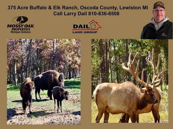 Amazing 376 Acres Jack Pine Safari Hunt Club . Bordered by the world-famous Garland Lodge and Golf Resort. Offering 4 world-class golf courses A great lifestyle where you can hunt, fish, and play golf on the same day. It's perfect to build your home. Great new lifestyle. The Game Ranch features 2 cabins along with a recreation room. There is 376 Acres high fenced, 40-50 +/- Elk and 19 Bison. Nice trail system throughout the ranch along with 3-4 Large Food Plots approx. 60-80 Acres. The 40x50 Pole Barn provides lots of storage for equipment to run the ranch. This Amazing Recreation Hunting Paradise has 7 Lakes less than 3 miles away for the 4 season enthusiasts who want to fish, boat, kayak, golf, hunt, snowmobile, quads, and ATV there are several thousand acres of State land and DNR Natural Resources Properties that are less than 1 mile away. Please Call Larry Dail 810-836-6508 for additional information on this Amazing Game Ranch.