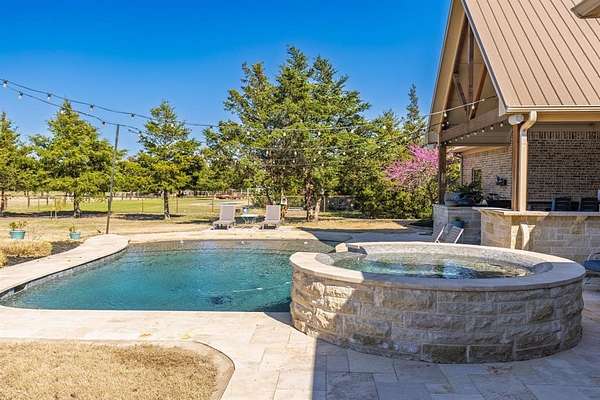 EXQUISITE & INCLUSIVE! Main and guest quarters under one roof, 10 Ag Exempt Acres, Insulated Workshop with Electric and half-bath!Caddo Mills ISD!! Fabulous, 4185 sq ft living area includes 2583 sq ft main home and attached 1602 sq ft guest homes with separate entry! Foam Insulation, 2 tankless gas water heaters, 2 HVAC units. 3 car garage, stairs to 2 large attic storage areas! Main home includes 3 bed, 2 full baths & 1 half bath, kitchen, living room with stone gas log fireplace, dining room, Office, split bedrooms, Full outdoor kitchen, Outdoor living space, inground gunite pool (2023) with attached spa, fenced back yard. Gourmet kitchen with gas stove top, oven, built in microwave, built in refrigerator-freezer, farm sink and granite counter tops. Primary bedroom and ensuite with separate vanities, garden tub and large walk-in shower. Large custom closet includes entrance to laundry and utility room. Executive style Office with beautiful built-in shelving and storage. Open floorplan flows nicely from foyer entrance thru living room, kitchen, butler's pantry and dining room. Large windows frame your peaceful view of the Outdoor living area, outdoor full kitchen and swimming pool. Opposite the living room are 2 bedrooms and jack-n-jill bath to complete the split bedroom floorplan! The attached guest quarters with separate entry is perfect for parents, family members, or extended guests! All doors are 36 inch to accommodate wheelchair or walker. Living room with gas log fireplace, large primary bedroom with ensuite bath. Office-2nd bedroom combo includes queen size wall mounted Murphy Bed, built in cabinets and desk. Enter the separately fenced backyard thru a bright and peaceful sunroom. Outside, you will find 1200 sq ft Workshop with 450 sq ft overhang. Tons of storage upstairs in the loft area. Don't miss the opportunity to own this wonderful, hard to find, property with all the amenities you desire and need in place and ready for your enjoyment! See Documents.