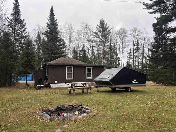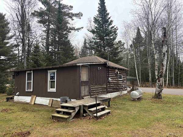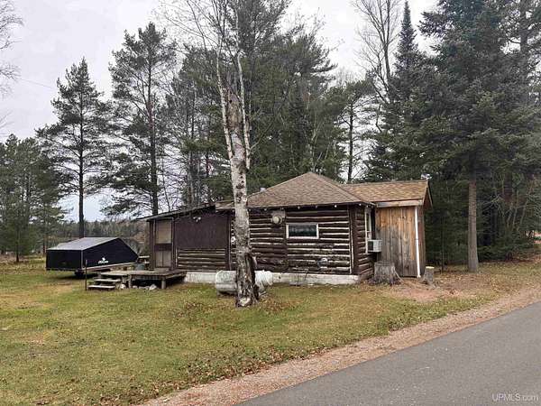 Charming Log cabin on Lake of the Falls near Turtle Flambeau Flowage, and many other lakes! Perfect for a weekend getaway or rustic retreat, the cabin offers the true up North feel. The cabin is nestled on 1.63 Acres with 160' of level frontage with some good sandy areas that would be suitable for swimming. There some majestic Pine trees on the property including a cluster down by the lake. There is some property on the other side of the paved road where you will find a large shed along with a separate smaller shed. Direct access to the Snowmobile trail can be found across the road! The cabin is cute, and cozy with the living room facing the lake. There are 3 bedrooms, and a nice sized kitchen. Off the kitchen you will find the bathroom. There is a well, septic, and electric servicing the cabin. Lake of the Falls offers great fishing, with the ability to catch a few right off your dock! There is a resort nearby for access to food & drink. This is a true gem for under 200K!