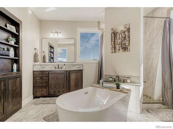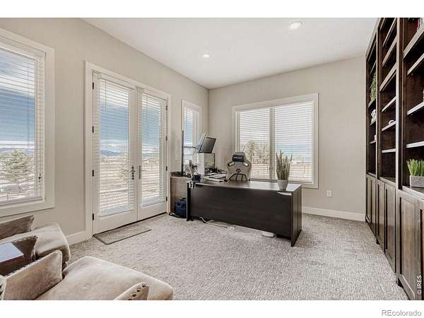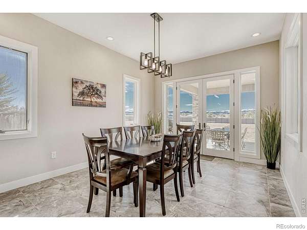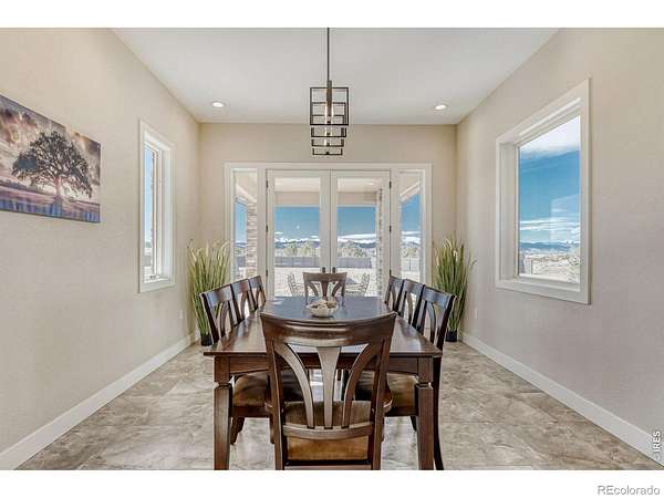 *NEW PRICE*Stunning 5 bedroom home on nearly 3-1/2 acres with scenic mountain views & huge 4000 square foot insulated & heated metal building; perfect for storing anything you want, a dream garage or running a business out of. No HOA, No Metro District. Just 2 miles from EHS, Soaring Heights, I-25, and a short bike ride from bustling, popular downtown Erie Bright, open floor plan w/large west-facing windows, ceramic tile throughout the main floor. Gourmet kitchen features granite countertops, custom cabinetry, Jenn-Air appliances, and breakfast bar. Main floor study with mountain views & a hidden room! Enjoy 3 bedrooms upstairs including the primary bedroom with bonus sunroom and a walk in closet with your own washer and dryer, a room with built-in bunk beds & a large guest room w/private balcony facing the mountains. Basement includes a theatre/media room, 2 large conforming bedrooms, large storage room & a full bathroom. 3 car attached garage pre-wired for electric car charging. Plenty of room for toys and county approval for potential ADU; electric and water already ran to site. Recently installed fencing along County Rd 5; added privacy without losing the great view. This is a must-see property!