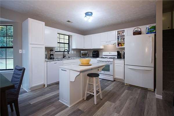 Welcome to this charming 4 bedroom, 3 bath home for sale in the Creekwood Community in Loganville. This home sits on over 2 acres of land and backs up to over 100 wooded acres of property that can never be built on that adds to the privacy and enjoyment of the home. From the back deck you can relax while enjoying view of creek that runs through the property as well as a walking trail to enjoy for the outdoors enthusiast! When you go inside the home the Family room boasts a Brick fireplace that is flanked by bookshelves on either side. New flooring throughout the home including LVP in Kitchen and Family Room. The kitchen has white cabinets, white appliances and includes a kitchen island that adjoin the separate dining area. There is one bedroom on the main level and 3 additional bedrooms are upstairs. There is plenty of storage in the home and, there is also a large storage building and shed in the back yard. Added bonus new HVAC was installed in 2021. Home is in the sought after Walton County - Loganville School district and is in close proximity to shopping and dining in Loganville. This property is a MUST SEE!! Eveything for country living but near Hwy 78 and Loganville.