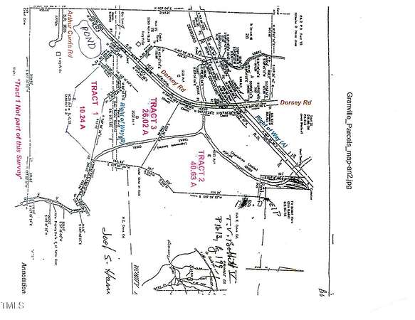 36,26 Acres with 4 BR Suitable Soil for shallow gravel or gravelless standard septic trenches with soil depths 24 - 30''. 1089 FT. of paved road frontage at 4688 Dorsey Road Tract 3 (26.02 acres) + Tract 1 (10.24 acres) & starts at C-21 Sale sign across street from home at 4699 Dorsey Rd and ends by Natural Gas Pipe Line across street from home at 4679 Dorsey rd. Tract 3 & 1 MUST be SOLD Together, Listed at $299K. Another 40 Acres, Tract 2 with 707 FT. of paved rd frontage can be purchased for an additional $299K . It is located adjacent & before Tract 3. Tract 2 starts at another C-21 sign and IINFO box with MAPS of all three tracts. & across street from home at 4710 Dorsey Rd. See MLS# 10107014. NO RESTRICTIONS and County Taxes Only! Tract 1 with no Road frontage is tucked behind Tract 3. Tabbs Creek runs through the middle of the property. 50' Wetlands on each side of the stream. Lots of land behind the stream. Near the end of the 1089 FT Road Frontage is a yellow Stob marking the entrance of the 60' easement for Natural Gas Pipeline that goes through Tract 3 and at the top of Tract 1. This cleared easement makes it easier to walk the land! Tract 3 ends near neighbor's pond and cleared land , All 3 Tracts are Wooded and slope gently down to the streams and slopes up after the streams. Sellers in process of getting Soil Scientist Reports for All 3 Tracts. Can own almost 77 Acres & almost 1900 FT of Road Frontage with the purchase of All 3 Tracts but Tract Two can be sold alone. Enjoy HUNTING or create your own FAMILY COMPOUND