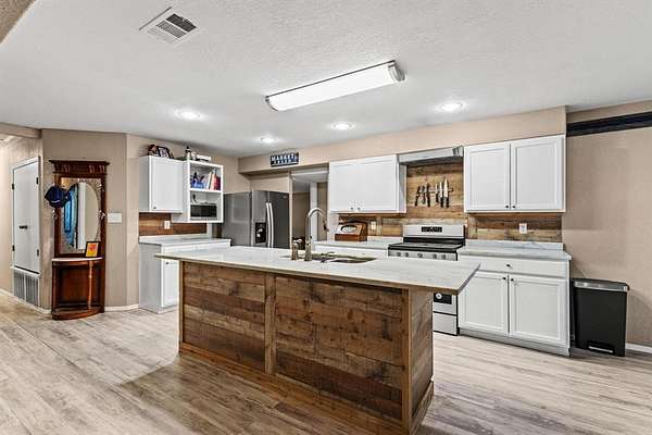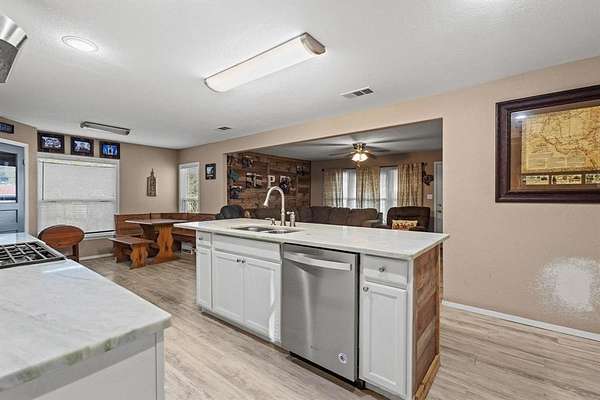 Welcome to your perfect country retreat! This 17.53-acre property features a remodeled home and a spacious metal shop, all within the desirable Bells School District and just minutes from Denison and Sherman. The home offers an excellent layout with large rooms throughout. The kitchen is open to the living area and includes a pantry, a generous island, and elegant marble countertops--perfect for entertaining or family gatherings. Just off the kitchen is a nice-sized laundry room for added convenience. The master suite features a large bath and walk-in closet. Enjoy relaxing evenings on the covered front porch while taking in the peaceful views of your fully fenced property. The home has a durable metal roof, and the HVAC system and windows were replaced approximately six years ago, providing peace of mind. Outdoors, you'll find a large 24X30 metal shop with a roll-up door, tree-lined acreage with cleared areas, and abundant wildlife including deer, hogs, and turkey. Whether you're looking for a quiet homestead, a place to hunt, or room to grow, this property has it all.