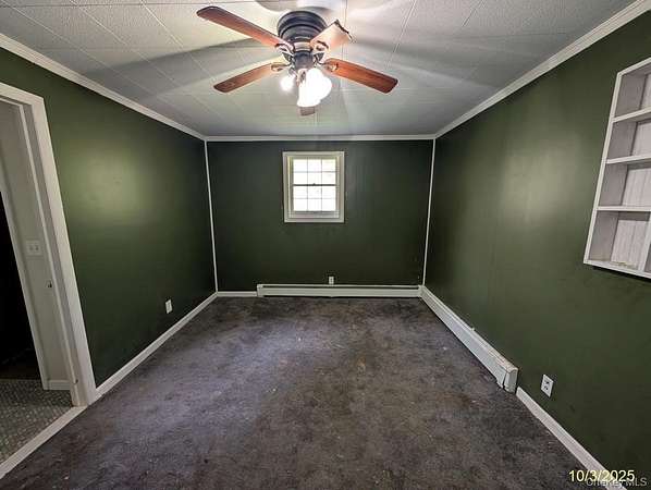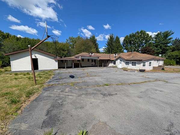 Welcome to this spacious ranch-style home offering the convenience of one-level living on a private, level lot. Inside you'll find a granite kitchen with island seating, a formal dining room for gatherings and two separate living rooms that provide plenty of space for relaxing or entertaining. The primary bedroom includes a private bath, plus there are three well-sized bedrooms and three full bathrooms to accommodate everyone. A dedicated home office adds extra flexibility. Outdoors, the level property features mature trees and a small pond tucked away for a touch of country charm. While the home does need repairs, it offers great potential for buyers looking to customize and update to their own style. Conveniently located just minutes from schools, town parks, and local amenities. Sold As-Is. Buyer to pay NYS and any local transfer taxes. Offers with financing must be accompanied by pre-qual letter; cash offers with proof of funds. Please see agent remarks for access, showing instructions and offer presentation remarks.