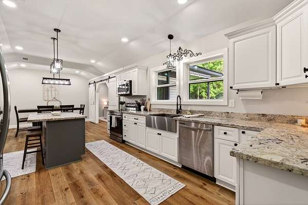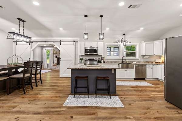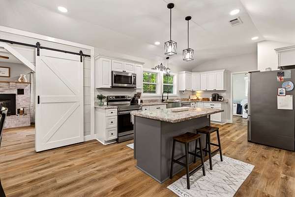 Country living on the edge of town! This 3 bedroom 2 bath home recently underwent a remodel and it's a beauty! The farmhouse style throughout the home makes this one feel like home. In the kitchen you'll find stainless steel appliances, granite countertops, a built in island, a pantry and of course, a farmhouse sink! The primary bedroom has an en-suite bathroom with a soaker tub and walk in tile shower. Throughout the house you'll find laminate flooring and wood shiplap style walls. All new roof, plumbing and electrical make this one exceptional! Out back there's a 1 bedroom, 1 bath guest cottage, a workshop and a barn. This property consists of approximately 34 acres with 4 of them being in the city limits. Plenty of deer and other wildlife here. Did I mention there's a pond also? Come enjoy the country life with the convenience of town! Call for a showing today
