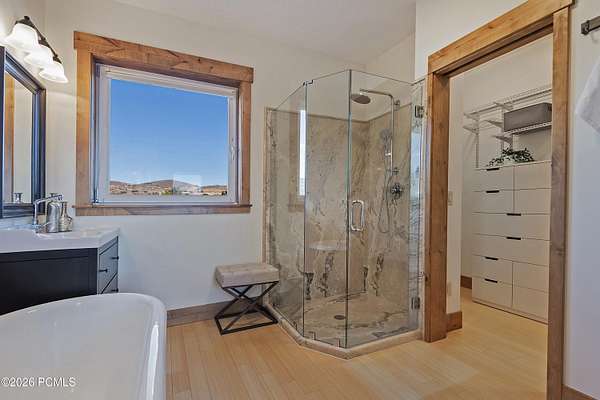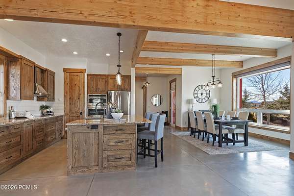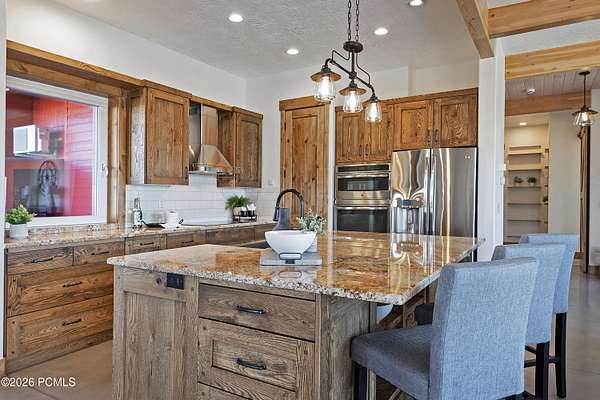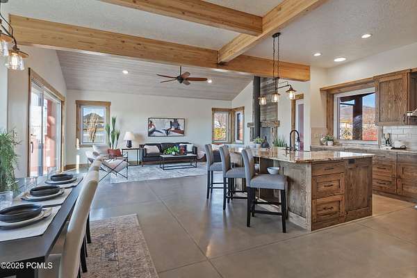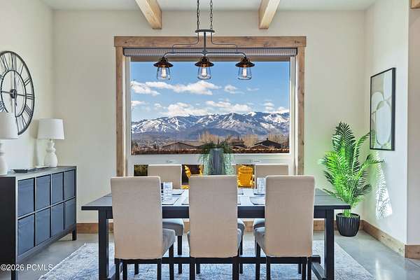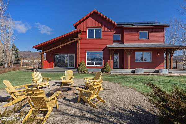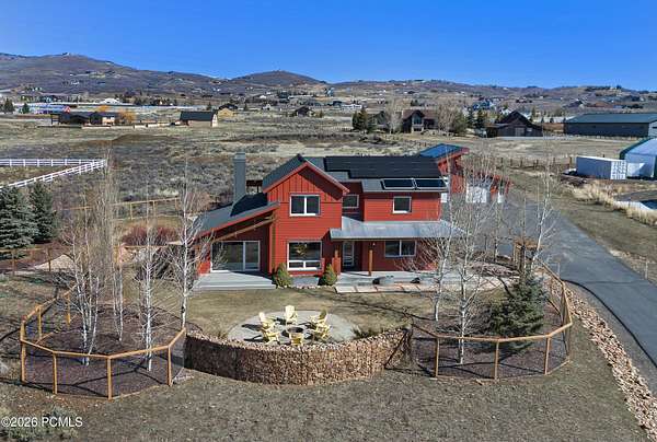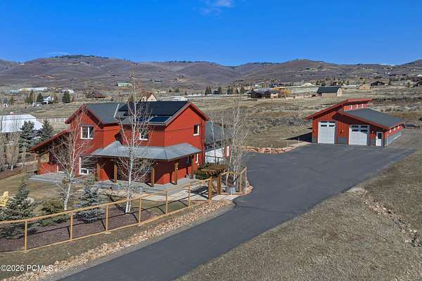 Arrive at 469 Maple Drive to 2.57 acres in Silver Creek Estates, the Park City ridge-line stretching out in a sweeping panorama before you. This is neither a spec build nor a flip- it is the personal home of a high-end custom builder, designed and constructed with exceptional care. Step inside and notice it immediately: the air feels different. A Swiss-engineered Zehnder ventilation system continuously delivers filtered fresh air, replacing the full air volume every three hours. Combined with a deeply insulated building envelope, zoned hydronic radiant in-floor heating, and triple-pane European tilt-and-turn windows, this PHIUS Certified Passive House offers comfort and efficiency validated through rigorous third-party certification. Polished concrete floors span the main level, and large windows framing mountain views throughout. Find a flexible guest room opposite the eat-in kitchen, dining, and great room. The oversized 3-car garage features floor drains, cabinetry, EV charging, and a storage loft with drop-down ladder. Upstairs, two bedrooms and a full bath share the level with a primary suite that features expansive mountain views, soaking tub, dual vanities, and walk-in closet. Outdoor amenities include a gazebo-covered swim spa, in-ground trampoline, and outdoor shower. A 9,650-watt solar PV system spans both the home and outbuilding; paired with a solar thermal system covering ~80% of domestic hot water, the home runs net-zero- recognized in the 2015 U.S. Green Building Homes Tour. Across the property, a fully permitted 36*48 outbuilding offers 1,728 SF on a full concrete foundation with loft storage, full insulation, and 220V/50-amp outlets ideal for a workshop, studio, or ADU conversion. A Kubota tractor with snow blower and plow is negotiable. Welcome to a rare combination of Passive House performance, open space, and sweeping Park City views.