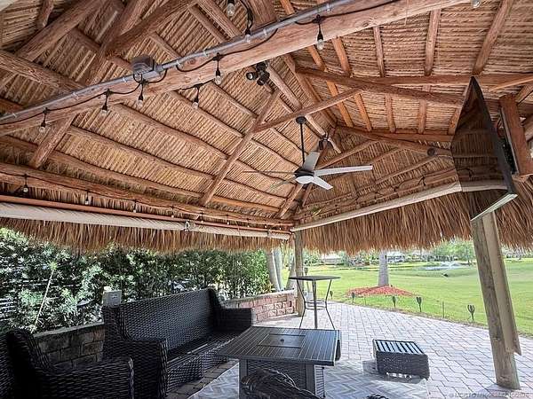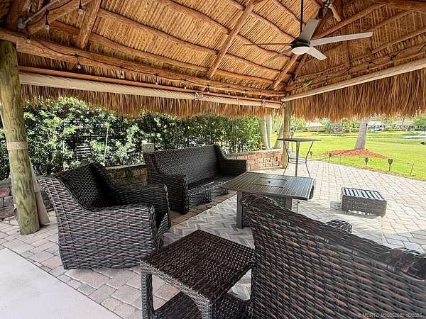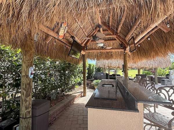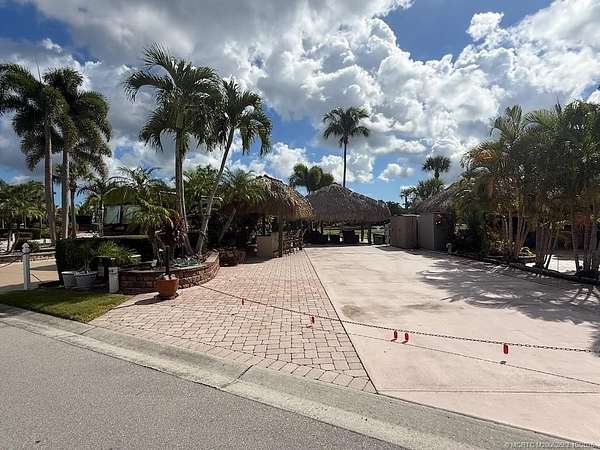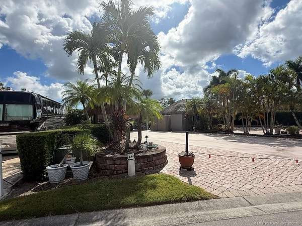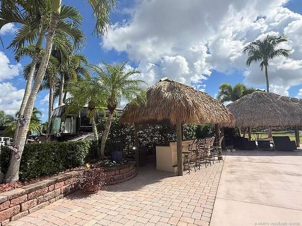 Luxury Motorcoach Lot with Dual Tikis - Move-In Ready! Located in the highly sought-after Motorcoach Resort St. Lucie West, this spacious 3,051 sq. ft. lot offers the perfect blend of comfort, style, and entertainment. Surrounded by lush, mature landscaping and scenic views, it features two re-thatched tiki huts designed for outdoor living. The first tiki includes a fully equipped kitchen with refrigerator, Bosch water heater, induction cooktop, and Napolean grill with new cover-plus a 55" flat-screen TV. The second tiki features a new 65" TV, Sony surround sound, and high-quality wicker furniture with a fire pit. The large tiki is enclosed with Eisenglass curtains and built-in screens for year-round enjoyment. Additional highlights include a mosquito control system, furniture and shade covers, and easy access to resort amenities.Meticulously maintained and truly move-in ready-your luxury motorcoach lifestyle starts here!