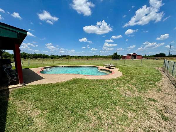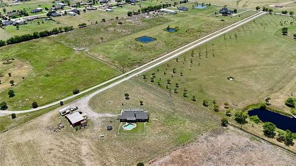 You'll feel right at home in this one story red brick Ranch home on 13.045+- peaceful acres. Experience sunset views and country living from the expansive front porch. This 3 bedrooms, 2.5 bath home offers many amenities throughout including an inviting entry way that welcomes you past a formal dining and into the spacious living room with wood burning fireplace, high ceilings with crown molding and a large game room that overlooks the pool area with outside access. If you like to entertain, you'll love the open Kitchen with serving bar and breakfast area surrounded by an an abundance of cabinets. The large primary suite with Tray ceiling offers private access to the covered back porch and pool area for late night swims and a primary bathroom with double sinks, jetted soaking tub and large walk-in closet with custom built-in storage shelves. This home offers multiple outdoor access points for added convenience and gatherings. Beyond the home you'll find a 4 stall barn with concrete alleyway that accesses the pasture and a 1200 sq ft Shop with roll up door, constructed of Red Iron with separate area for office and half bath ready to be finished. Aerobic Septic and public water system. All of this is conveniently located in Rockwall County with sought after Royse City schools and an Agricultural Exemption resulting in low taxes. Repairs are needed as disclosed on SD and the Sellers will consider allowances presented in an offer. Priced well below Tax value.