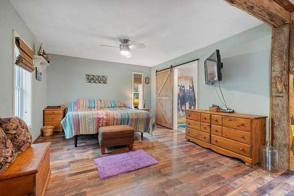 Horse-ready 5.08-acre property in Hot Springs with everything you need for country living! This beautifully remodeled 3-bed, 3-bath home offers 2,542 sq. ft. of updated space with luxury vinyl and tile floors throughout--no carpet! The spacious kitchen features custom cabinets, granite countertops, double sink, electric range, oven, dishwasher, and pantry. Above the garage is a versatile mother-in-law suite with a private entrance, previously rented as an efficiency apartment for $750/month. It's perfect for guests, rental income, or multi-generational living. Bring your horses! The property includes a 1,260 sq. ft. barn with two stalls, a pond, garden area, chicken coop, and a fenced dog run--everything you need for a hobby farm or peaceful rural lifestyle. Relax on the front porch, back patio, or around the firepit. Private and peaceful, yet just minutes from all Hot Springs amenities. Whether you're dreaming of a mini farm, a horse haven, or just a quiet retreat, this property delivers. It truly feels like you're miles away from the city, yet you're close to everything Hot Springs has to offer.