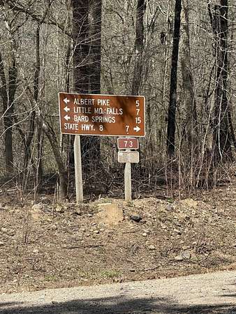 From Nashville, north on Hwy 369, continue on Highway 70 east, north on Hwy 369, continue through Albert Pike Recreation area, property is on the north side of the gravel road about 5 miles from Albert Pike