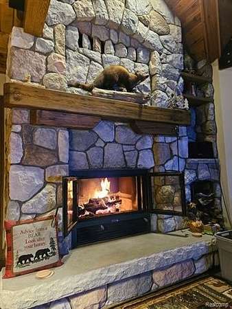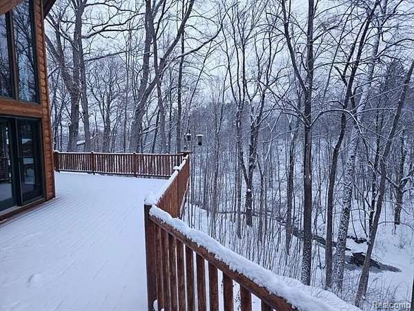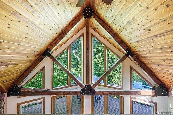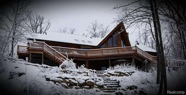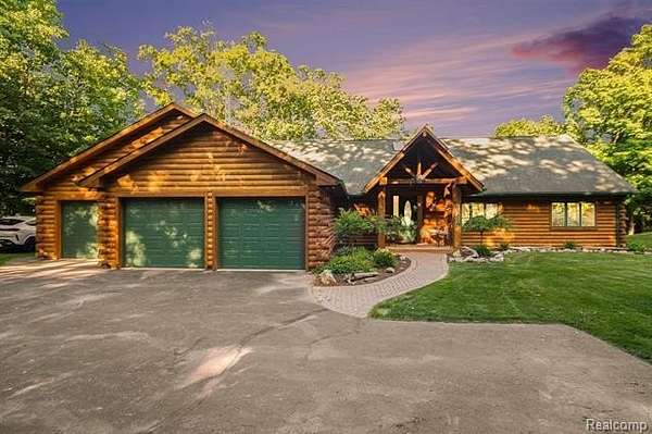 Imagine owning this extraordinary luxury log cabin home, nestled in a breathtaking setting with the soothing sounds of a waterfall, unfolding as a serene oasis. With its expansive property spanning almost six acres, complete with a large pond, this haven offers a tranquil and private environment for nature enthusiasts to unwind and recharge. As you enter this magnificent home, you are greeted by a two-story great room with an abundance of windows, offering awe-inspiring views that evoke a deep sense of relaxation, serenity, and tranquility. A grand staircase contributes to the airy and open feel of the home, leading to the upper level, where dreams, aspirations, and limitless possibilities come alive. The main kitchen is a gourmet chef's dream, boasting ample counter space and elegant cabinetry, making it perfect for meal preparation, hosting guests with flair and finesse, and creating unforgettable culinary experiences. This luxurious log cabin features 3 spacious beds 2 on lower level, each designed with comfort, style, and inspiration in mind. The primary bedroom is a true retreat, featuring a lavish en-suite bathroom. The finished lower level of this home is an entertainer's paradise, complete with a second kitchen, ideal for hosting gatherings, accommodating guests with ease and warmth, and creating lasting memories. Walkout access leads to a beautifully landscaped backyard, offering picturesque views of the water, inviting outdoor exploration, adventure, and a profound connection with nature. This home was built by Gastineau Log Homes, a once-in-a-lifetime kind of find, crafted with stunning Oak wood that adds timeless beauty and unmatched character. A MUST SEE!!
