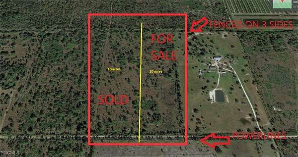 10 ACRES private, partially wooded & fenced land (330x1320) with mature Florida pines on a good gravel access road with power directly in front. Perfect for weekend recreation or building a home, ranching & mico-farming. This area is zoned AG with no deed restrictions & allows 1 SFR home/ Mobile home or barn'Ominium per 10 acres...no limit on the # of outbuildings. This is in a NON flood zone ("X" 1 in 500 yr). The soil is ideal for garden or pasture with an elevation of 50-65 feet. Well & Septic required if building. According to Federal maps, No Scrub Jay or Wetlands known. Lot was cleared several years ago leaving Saw Palmetto & large Florida Pine trees in place with plenty of space to enjoy. Sold AS-IS with full clean title, cannot be split under 10 acres. RV & CONEX TRAILER FOR SALE SEPARATELY. Call for details, access approval & watch the attached video before going to the property. Fantastic growing section of Charlotte County just 5 min from the Redneck Mud Park & Babcock Ranch Preserve public access & 15 min to gas-groc & shopping. 20 min drive into downtown PG/ I-75. Call or email for details from an experienced land agent.