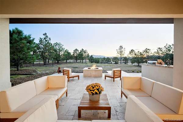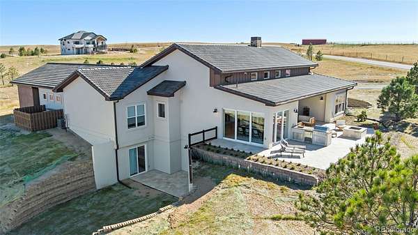 Beautiful Settlers Ranch. Located on the Palmer Divide 5 miles east of I-25 and Exit 158, this Mark Beery Custom Home showcases many features considered extras in other custom homes. Solid Oak 4'x8' doors, Travertine Tile surfaces and Hardwood Floors, custom Cabinetry and millwork, multi-slide Retractable Window Walls, an Outdoor Kitchen and Firepit, are standard features of a Mark Beery built home! Pikes Peak is your daily backdrop, morning glory or evening splendor set the tone for everyday living.