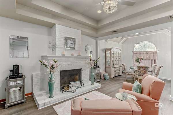 Coastal Comfort Meets Private, Wooded Luxury - Your Dream Home Awaits!Tucked away on a large, private wooded lot, this beautifully updated home offers the blend of peaceful living, modern upgrades, and a location in one of Gulf Shores' most unique and highly sought-after neighborhoods. Enter inside to a freshly painted interior, luxury vinyl plank flooring throughout the main level and updated lighting. The spacious living room features a large wood-burning fireplace, creating a cozy centerpiece for relaxing or entertaining. The main level offers a spacious kitchen, large pantry, a dedicated dining area, and a sunny breakfast nook for casual meals. The large primary bedroom includes a walk-in closet and a beautifully appointed en suite bath with a double vanity. You'll also find a comfortable home office, and a versatile game room that can easily function as a man cave, playroom, or additional bedroom depending on your needs. Upstairs, the home features a large bonus room for a media room, gym, or flex space, along with two additional bedrooms that share a convenient Jack and Jill bathroom. Sitting on almost 2 acres the outdoor living is just as inviting. A covered front porch welcomes you home, while the circle driveway adds curb appeal and convenience. The huge screened-in back patio is great for enjoying the wooded surroundings without the bugs, making it a space for entertaining or unwinding. A Graceland storage building provides ample room for tools, hobbies, or extra belongings. The home also has a new fortified roof. Homeowners enjoy deeded access to a private fishing pier on the Bon Secour River and access to community tennis courts - offering recreation, relaxation, and natural beauty. This is more than just a home, it's a lifestyle. This home is a must see! Come experience your forever home and enjoy everything Martyn Woods has to offer. Schedule your private tour today! Seller is related to Listing Agent. Buyer to verify all information during due diligen