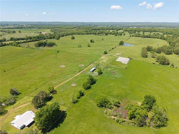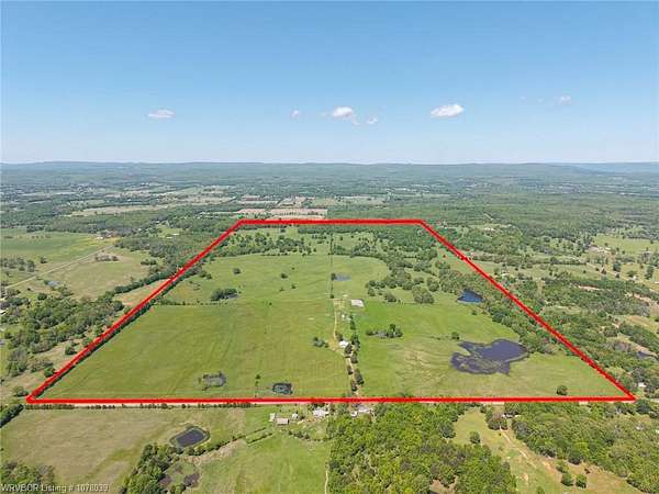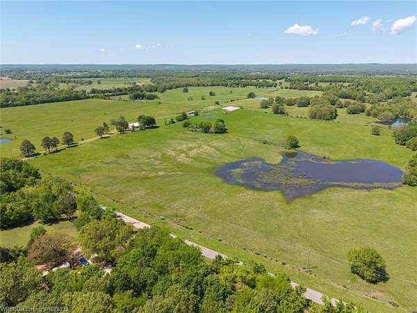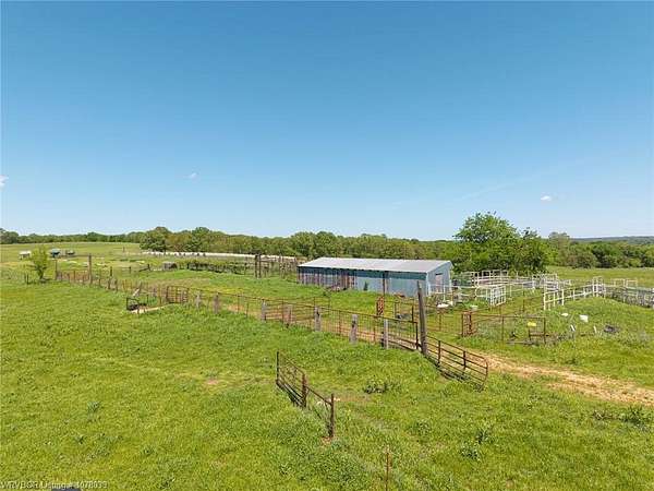 Absolutely a RARE find with 320 acres m/l of pasture land, along with great fishing and hunting...all in the same spot!! Bring your livestock and take advantage of this rare find in Sequoyah County! With 320 acres m/l, this incredible property is set up for farming and livestock management, while also the ability to enjoy hunting, fishing, etc. This property offers acres and acres of sprawling pasture land, is fully fenced and cross fenced in multiple areas, providing ponds for each cross fenced area (approximately 9 ponds total!) This property also includes corrals and a hay barn along with a 3 bedroom, 1 bath home with approximately 1,700 sq ft and a brand new metal roof just added in 2024! Great location in the Maple/Central area and situated on a paved road!