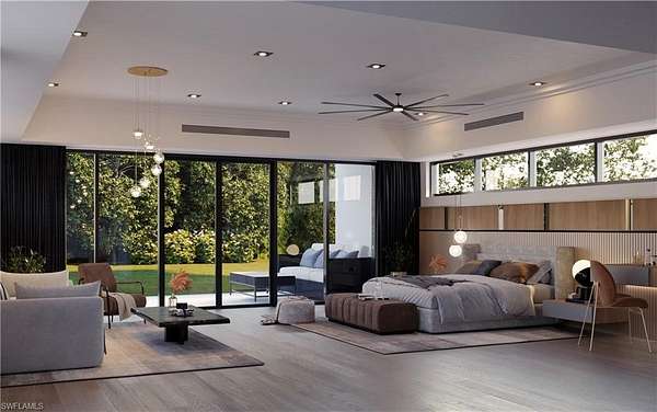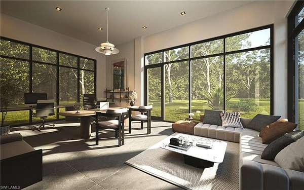 Introducing a revolutionary vision in Contemporary architecture within Naples, Florida, this bespoke concrete residence presents a distinctive luxury. Featuring a spacious kitchen and entertainment bar, 7 bedrooms, 5 full baths, and 2 half baths spread across 8,003 sq ft, it offers unparalleled spaciousness and seclusion. Tucked away on 2.27 acres west of Collier Boulevard, its tranquil setting ensures serenity while still being minutes from Naples beaches. Inside, discover a captivating blend of concrete, wood, and natural stone accents, enhanced by soaring windows and high ceilings that bathe the home in natural light and showcase stunning vistas. Grand illuminated corridors lead to each bedroom, boasting ample closets and ensuite baths. Outside, a sprawling outdoor retreat awaits, complete with a pool, spa, and gourmet kitchen-ideal for hosting gatherings of any size. Prepare to be captivated by the unmatched sophistication and exclusivity of this extraordinary estate.