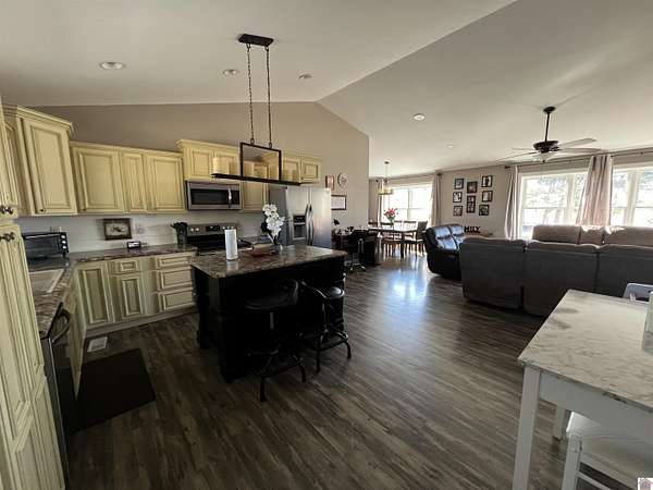 Beautiful 3 bedroom, 2 bathroom home featuring an open-concept layout that seamlessly connects the kitchen, living, and dining areas--perfect for everyday living and entertaining. The spacious primary suite offers a huge bathroom with double closets, providing plenty of storage. Enjoy peaceful country living with stunning views of open pastures and rolling fields both in front of and behind the home. Outside, you'll love the circular paved driveway for easy access and extra parking, along with a 2-car garage. Step into your own backyard retreat complete with a pool and deck--ideal for relaxing, hosting gatherings, or additional storage and hobbies. The pole barn offers excellent additional space for equipment storage, a workshop, recreational vehicles, or even farming needs. Situated on 3 acres, the property also features a separate well, offering added potential for an additional residence. This property offers the perfect blend of comfort, functionality, and scenic surroundings.