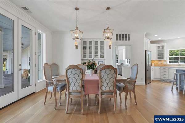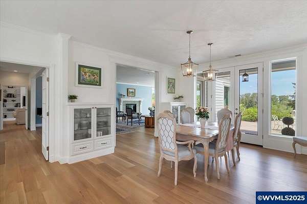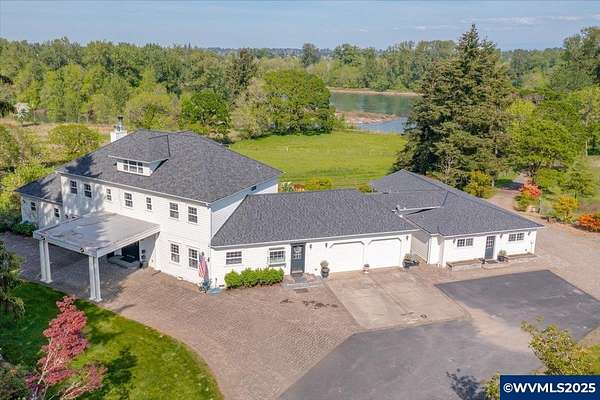 Rare Riverfront Estate in the Heart of Wine Country...Welcome to River Cove Farm! Truly a one-of-a-kind riverfront estate in the Willamette Valley wine country, just minutes from downtown Salem. Set on 19.05 lush acres with Willamette River frontage and a private cove for boat tie-up, this gated property offers abundant privacy and natural beauty. Flexible living areas throughout the property are well-suited for remote work, multi-generational living, or simply spreading out in comfort. Nestled in Willamette Valley wine country, a long, paved driveway winds past pastures and fruit trees to a stately Georgian-style home that exudes timeless elegance from the moment you arrive. The floor plan is designed for comfort and versatility. The main-level primary suite creates a serene retreat with a cozy fireplace and an ensuite bath. Upstairs, additional bedrooms and two full bathrooms provide ample living space. A charming, third floor sun-filled loft with a large closet and half bath offers endless possibilities--ideal as a guest hideaway, children's bunkroom, or hobby space.Thoughtfully appointed living spaces make this home perfect for both everyday living and special occasions. A refined library with built-ins and a majestic living room capture sweeping views of the grounds, while the elegant kitchen and formal dining room set the stage for memorable gatherings. A fully renovated, expansive recreation room with kitchenette and full bath, connected to the main house via a breezeway, can be used for entertaining or as an in-law unit. A standalone cottage with one bedroom plus an office offers even more dwelling options.Outdoors, the property is a true gardener's and hobby farmer's paradise. Relax on the spacious patio and take in the river views, or explore the pastures, fruit trees, and landscaped grounds. A large shop/barn supports a variety of projects, and the delightful, oversized chicken house--adorned with a school bell and accompanied by a fenced chicken yard--adds a touch of storybook charm. Children (and adults) will love ringing the bell when they find fresh eggs.River Cove Farm offers the best of both worlds: a serene, country setting and easy access to all the conveniences and cultural options of downtown Salem.