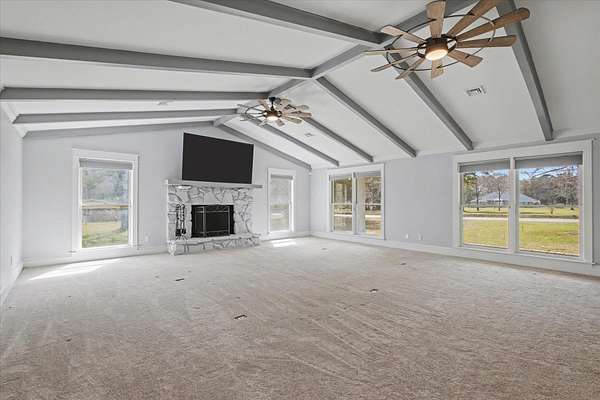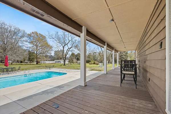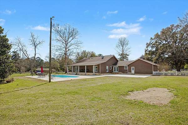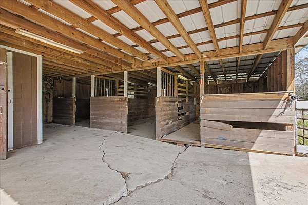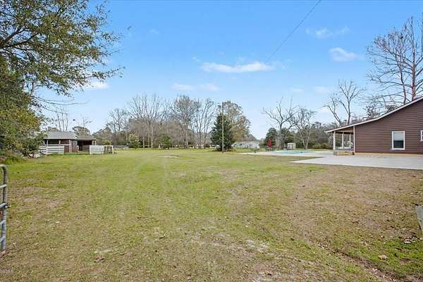 MOVE RIGHT IN TO THIS BEAUTIFULLY UPDATED ACREAGE HOME WITH POOL AND STABLES! This lovely home sits on a spacious 1.8 acre lot with 2 porches over-looking the front yard, ready for your rocking chairs and a large covered porch over-looking the back yard and in-ground pool! IT IS CURRENTLY A TWO BEDRM, but the large walk-in closet was previously a third bedrm, and could be converted back to a third bedrm with minor renovations. The previous bedrm entry was off the hallway. Special features include the huge great room with vaulted beamed ceiling, large stone fireplace, updated ceiling fans and multiple windows for added natural light. The gorgeous and completely updated eat-in kitchen, features kitchenAide double ovens in a brick accent wall, 2 islands, GE profile fridge and stove top, pull out shelves, quartz counter tops, and loaded with a wall of cabinets! Spacious 11x 9 laundry rm comes with a built-in sink and a wall of cabinets for extra storage, plus washer and dryer. The large primary bedrm features 2 walk-in closets and totally updated primary bath with shower and double sinks. The roomy hall bath features a jetted tub plus two sinks. You will love the huge patio off the 2 car garage, plus the sparkling pool with room for patio furniture. 3 stable barn plus/ workshop and fencing. Termite bond. Convenient location just minutes to shopping. Lots to love at a great price!