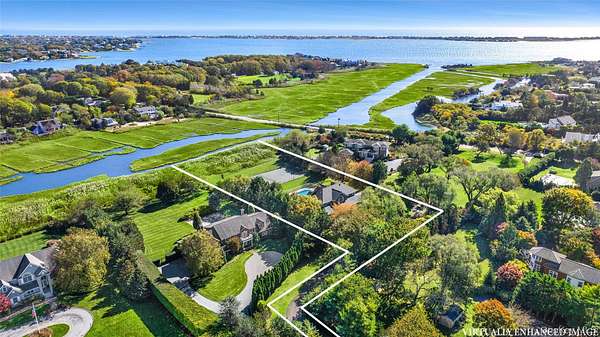 Set on +/- 2.01 acres south of the highway on Tanners Neck Creek in Westhampton, this post-modern residence, meticulously crafted by JP Spano, is set down a long, private driveway. Perfectly suited to enjoy the Hamptons lifestyle, this property is outfitted with all the amenities: heated, gunite pool, hot tub, play-gym, and Har-Tru tennis court. The front foyer opens to a bright and inviting living room with fireplace and cathedral ceiling. The chef's kitchen offers a center island with seating, Wolf and Sub Zero appliances, separate breakfast banquet, and expansive pantry/laundry/mud room adjacent to the attached two-car garage. The formal dining area overlooks the pool and back deck. A cozy den, home office, guest bedroom, full bathroom, and powder room complete the first floor. Upstairs, the gracious primary suite includes a walk-in cedar closet, en-suite with jacuzzi soaking tub, separate shower, and dual vanities, and a private balcony overlooking the well-manicured backyard. Two additional guest bedrooms, full bathroom, and bonus room complete the second floor. This Hamptons property is a short distance from Westhampton Beach's vibrant Main Street with boutique shopping, high-end restaurants, and world-class ocean beaches.