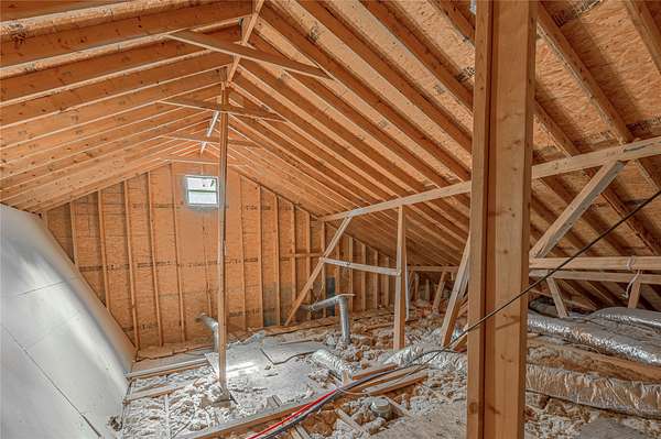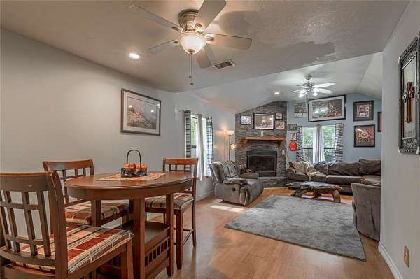 Nestled on 1.8 acres of tranquil, wooded land, this beautiful country home offers peace, privacy & escape from city life. Enjoy relaxing on the front porch before stepping inside to a bright & airy living room. An extra area with soaring ceilings makes ideal office/flex space. Kitchen features SS appliances, granite countertops, tile backsplash, center island with cooktop & abundant custom cabinetry. Den showcases stone-accented, wood-burning fireplace—perfect for gatherings & entertaining. Modern upgrades include tankless water heater, superior insulation, & sturdy construction with 2x6 studs spaced at 16". Attic includes unfinished area with the potential to add approx 400 add'l sf of living space.