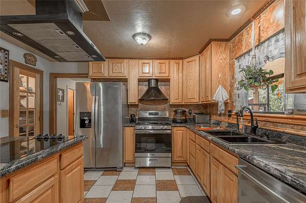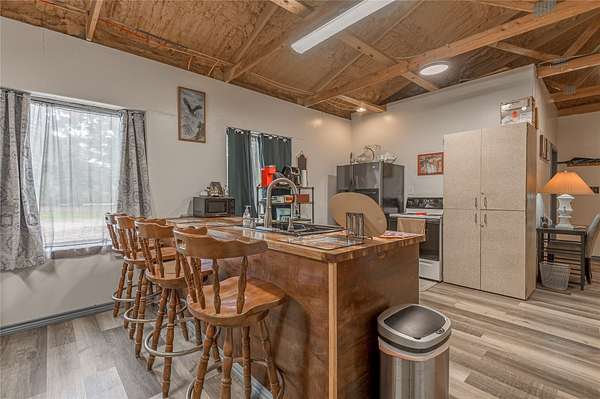 Second Home: Versatile 1,500 sf building, complete with den & fireplace, 2 kitchens, open dining area, 2 bedrooms, & full bath—offers flexible options for guests, extended family, or rental.