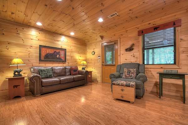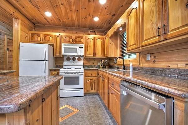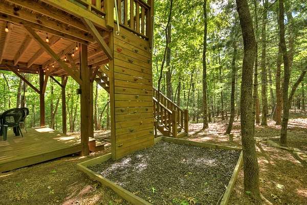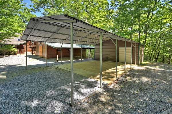 Discover your dream retreat at this enchanting 3-bedroom, 3-bathroom authentic log cabin nestled within the serene landscapes of Blue Ridge...This meticulously maintained home offers an ideal blend of rustic charm and modern updates, ensuring a cozy yet sophisticated living environment. The heart of the home features a majestic stone fireplace flanked by soaring ceilings and rich wood interiors, creating an inviting atmosphere that extends throughout the property. Large windows bathe the space in natural light, enhancing the warm, woodsy aesthetics. Each bedroom, including the primary bedroom & loft area, promises spacious comfort, while updated tile showers add a touch of elegance. Outdoor living is elevated with wrap-around porches and decks, perfect for relaxation or hosting gatherings. The property includes a robust fire pit area for cool evenings under the stars, and a whimsical, large treehouse--complete with a screened-in bunk area, fire pole, and zip-line--offers adventurous fun for all ages.The full finished terrace level features guest quarters and additional storage, complemented by a practical carport, a workshop area, additional covered parking with outdoor storage, plus a garage for motorcycles or outdoor gear. The property's delightfully landscaped yard blends seamlessly with its natural surroundings, increasing its curb appeal. Just a stone's throw from the Toccoa River and surrounded by numerous hiking and biking trails, the cabin is also a short drive from the historic downtown area, offering both privacy and accessibility to local attractions. Whether you're seeking a profitable vacation rental or a family home or retreat, this property is a true gem that encapsulates the best of mountain living.