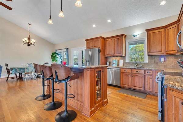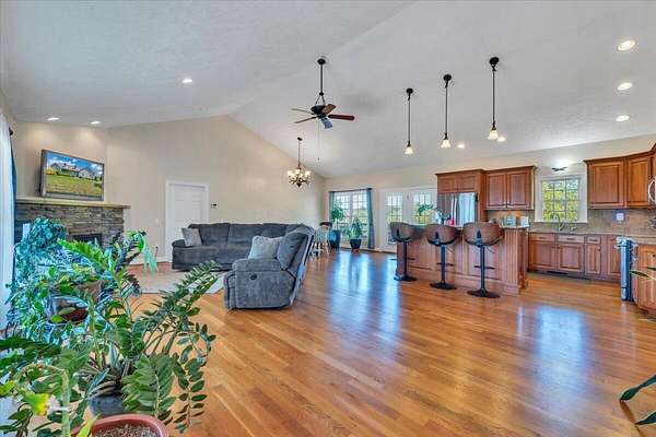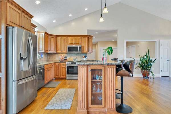 Est $3,299/moMOVE IN READY & meticulously maintained 4 Bedroom 3 bath home with Lake views! Prime location at Smith Mountain Lake--marinas, restaurants, shopping, Smith Mountain Lake community park with beach are all close by. Two covered porches offer relaxing lake views. The open layout is great for entertaining, with quartz counters, custom cabinets, and a pantry. The lower level features new flooring, large enterainment space a full in-law suite with kitchenette, plus an office and unfinished workroom. Oversized two-car garage has plenty of extra space, lower level storage area has double door for mower. 3 zoned thermostat. Ask Agent for updates list!