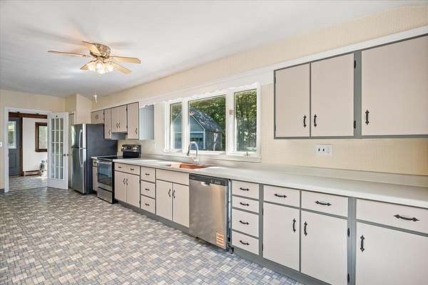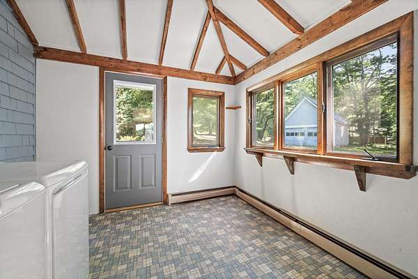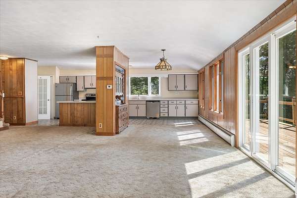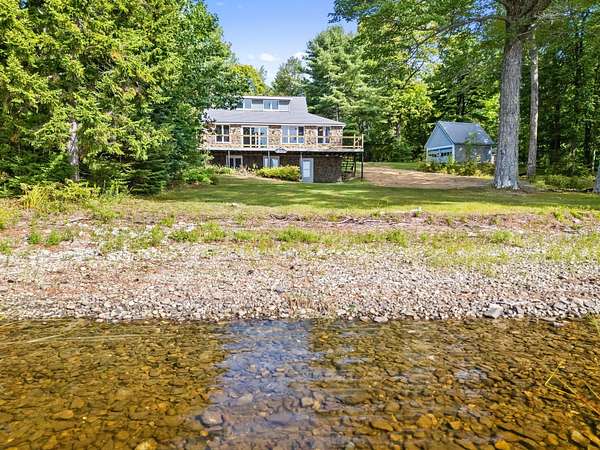 Welcome to Meddybemps Lake in Downeast MaineaEUR"an iconic 6,500-acre lake with more than 10 miles of pristine freshwater, celebrated for its natural beauty and exceptional smallmouth bass fishing. This spacious lakefront home offers room to gather, relax, and make lasting memories. A charming stone-faced exterior is paired with an expansive deck running the full length of the home, providing stunning panoramic water views. Inside, the open-concept living space centers on the original stone fireplace, creating a warm and inviting focal point. The upper level features three bedrooms and a full bath, while the main level offers a private primary suite with its own bath. The walkout basement extends the living area even further with a large family or game room, a half bath, and an officeaEUR"ideal for hosting guests or working remotely. Set on three private acres, the property also includes a detached two-car garage and an impressively large 30x30 barn, offering ample space for storage, hobbies, or recreational equipment. Lovingly enjoyed as a family home for many years, the home was completely rebuilt in 1967 and has benefited from numerous thoughtful updates. Recent improvements include updated and new electrical (2025), a brand-new leach field (2025), newer appliances, a sliding glass door, and a durable metal roof. This exceptional lakefront property is ready to welcome its next chapteraEUR"where mornings begin on the deck, days are spent on the water, and memories are made for generations to come.