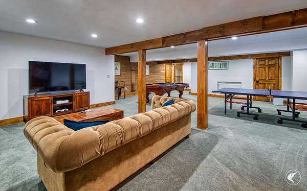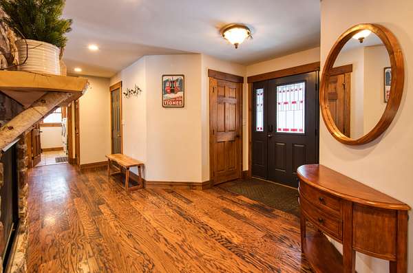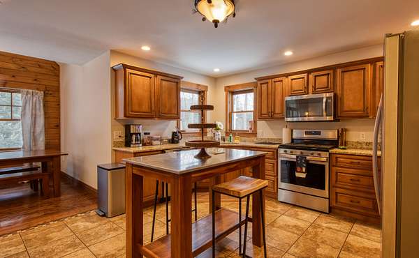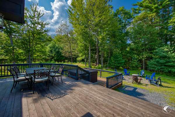 This fully furnished residence with an attached two-car garage offers a refined Adirondack retreat where luxury, comfort, and nature converge. Upon entry, a beautiful two-sided gas fireplace sets the tone, seamlessly connecting the foyer and living room. The living space is enhanced by high ceilings, abundant natural light, and tranquil forest views. The well-appointed kitchen features granite countertops and stainless steel appliances, thoughtfully designed for both entertaining and everyday living. With five bedrooms and three and a half baths, the home is ideally suited for hosting family and guests. The primary suite serves as a private sanctuary, offering an oversized walk-in closet and a spa-inspired en-suite bath with soaking tub and separate shower. The newly finished lower level provides an exceptional extension of the living space, perfect for game nights, film screenings, or relaxed gatherings. This level includes a spacious entertainment area, a full tiled bath, and a fifth bedroom. Outdoor living is equally inviting, with a deck and backyard designed for year-round enjoyment-featuring a hot tub, fire pit, and wooded path leading to the rear of the property, which encompasses approximately 460 feet of frontage along Potash Brook, creating a peaceful and private natural setting. Newly installed mini-split air conditioning ensures comfort throughout every season. Ideally located just minutes from Whiteface Mountain, the Ausable River, premier hiking and biking trails, and surrounding Adirondack towns. A proven rental history further enhances the appeal of this exceptional luxury mountain home.