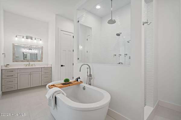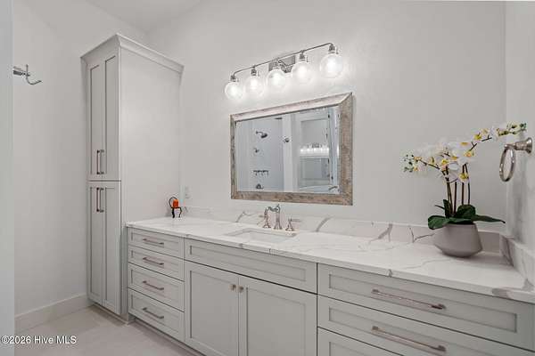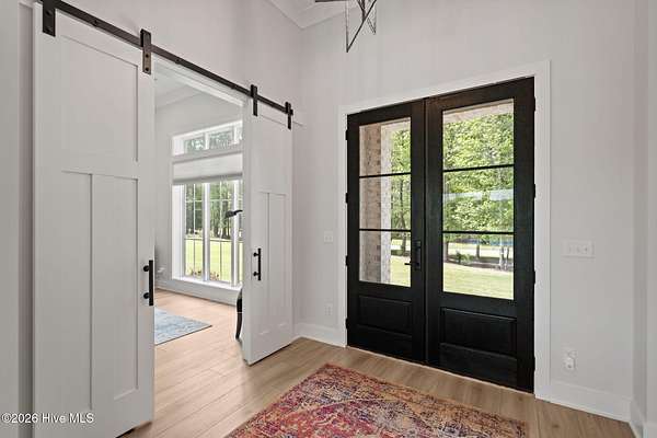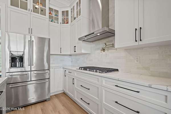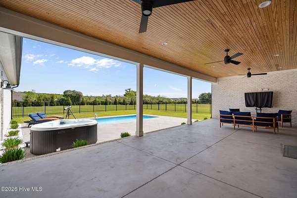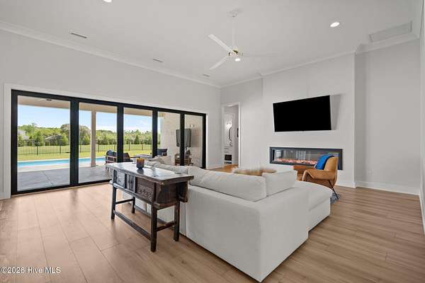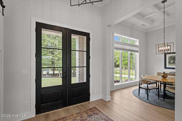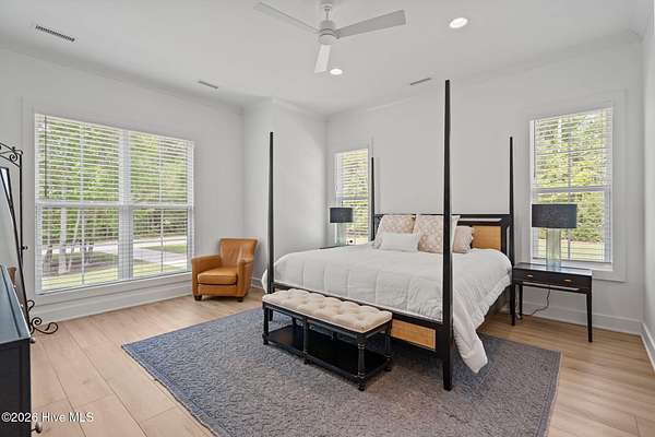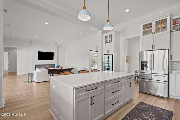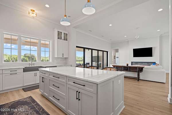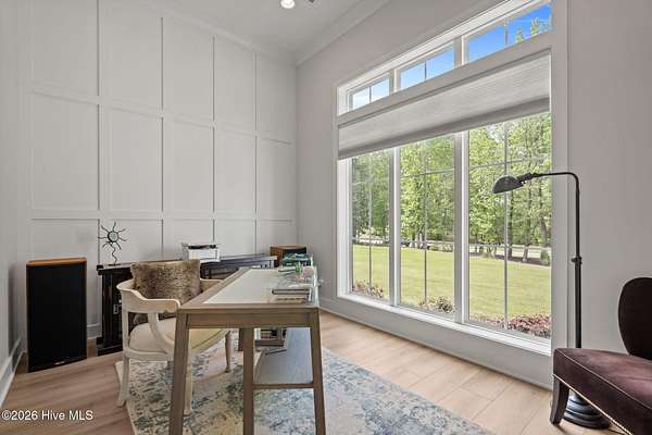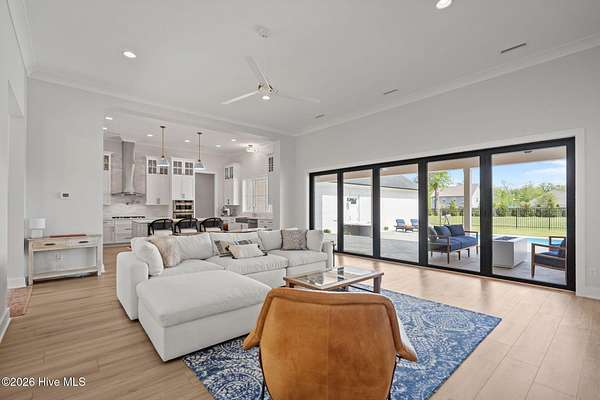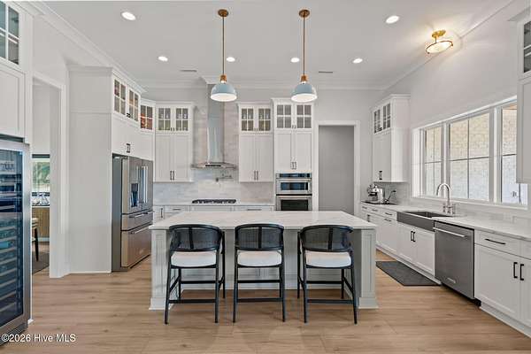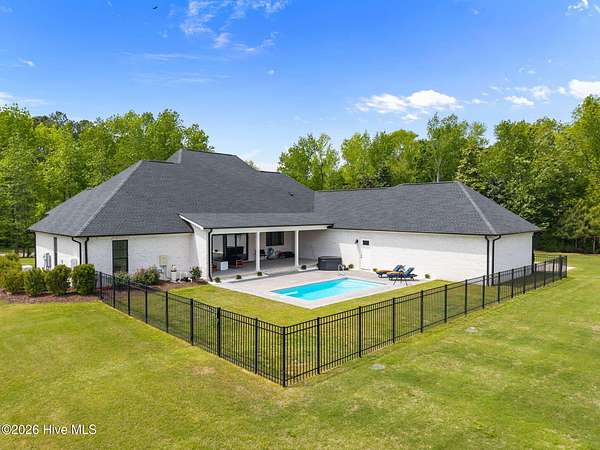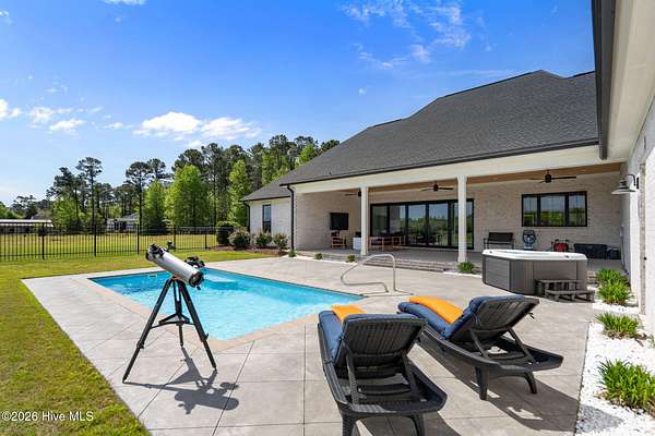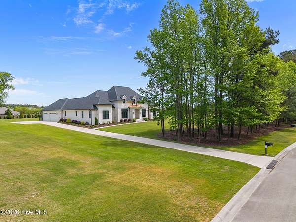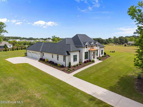 Welcome to a truly exceptional custom-built residence where timeless design meets modern luxury. The white brick, architectural rooflines & inviting front porch set the tone for what lies within. Inside, soaring ceilings, 8' doors, expansive windows & impeccable finishes a grand and warmly inviting feel. Every detail has been carefully curated, showcasing custom craftsmanship throughout and a thoughtful floor plan. The heart of the home is the stunning chef's kitchen, w/huge quartz island. Custom cabinetry features glass-front uppers, abundant storage & high-end appliances including a gas cooktop, wall ovens, and a wine refrigerator. The primary suite is a private sanctuary, offering spacious proportions and refined finishes. The spa-inspired bath elevates daily living w/ luxurious soaking tub, dual vanities, & a spectacular walk-through shower, creating a serene retreat. Large custom closets complete the suite with both style and function. Additional bedrooms are generously sized with access to beautifully finished baths, while a dedicated office provides flexibility for working from home or a quiet retreat space. A well-designed laundry room and ample storage enhance everyday convenience, while the home's layout offers the perfect balance of openness and privacy. Step outside to experience true resort-style living. The covered rear patio overlooks a stunning in-ground pool, complete w/ hot tub. Expansive lush yard w/ wifi controlled irrigation, offering exceptional space for animals, gardening, recreation, or simply enjoying unmatched privacy. Residents of Whitebridge enjoy an equestrian-friendly atmosphere along with a community pool, tennis courts, scenic bird sanctuary, ponds, and nature trails. Whitebridge offers the perfect blend of luxury living and an active outdoor lifestyle, all while being just minutes from shopping, dining, top-rated schools, and with easy access to Topsail Island beaches and coastal attractions.