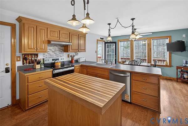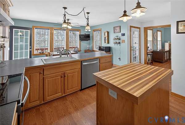 READY FOR LAKE LIVING? THIS 4 BEDROOM 2 FULL 2 HALF BATH HOME IS FOR YOU! Step in from the full front porch to find a formal dining room, large family room with gas fireplace, half bath and an eat in kitchen featuring an island with storage, SS appliances (NEW dishwasher & stove), large pantry and a beautiful view! The second level boasts the primary bedroom with ATT BA ( tiled shower, toilet, double vanity with storage), 3 more bedrooms all with ample closet space, a full hall bath (shower, toilet, single vanity with storage) and laundry space. This home also has a walk out basement with bar area, a huge space for playing games or hanging out and a half bath. This home is all about relaxing and having fun and the good times continue outside! The 15X10 screened porch and the 21X15 deck are the perfect spots to take in great views as well and doing some entertaining. The back yard features a fire pit area as well as a 15 hole mini golf course! This home comes with a deeded boat slip on Lake Anna as well as access to the common areas in the neighborhood. There is a 2 car attached garage for your vehicles as well as an extra large 2 bay detached garage with space large enough to house 2 boats along with extra room for storage! This is a DOUBLE LOT with tons of outside space and is the perfect place to have fun, relax and make memories! NEW dishwasher, NEW stove, MINUTES from the lake, DO NOT MISS THIS OPPORTUNITY! SCHEDULE YOUR TOUR TODAY!