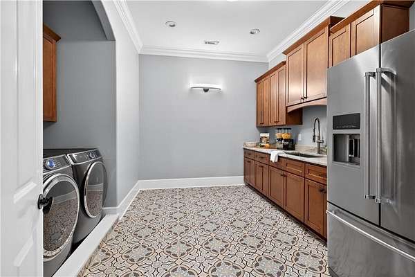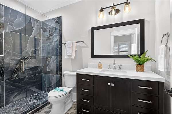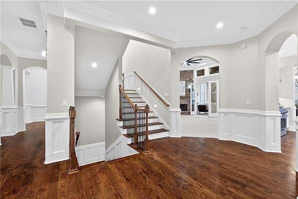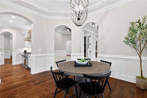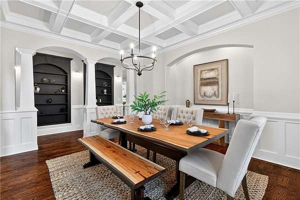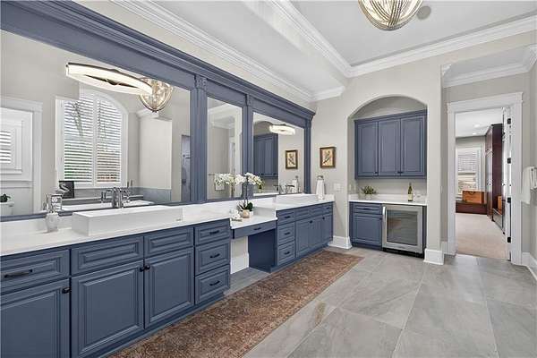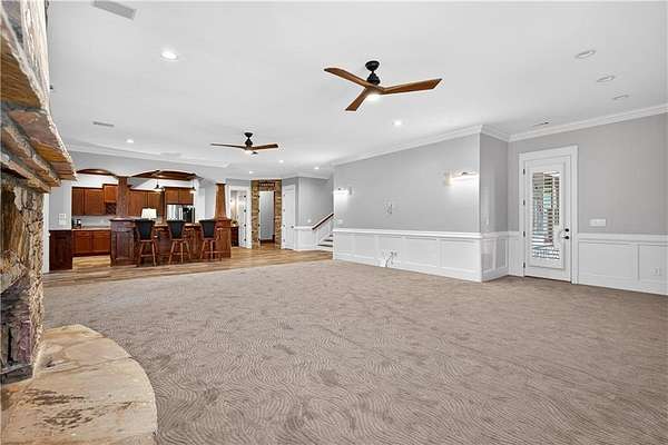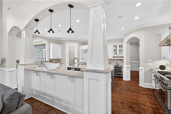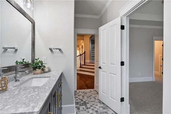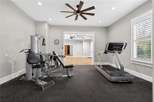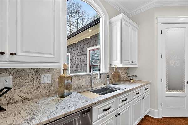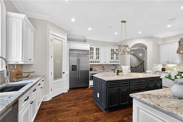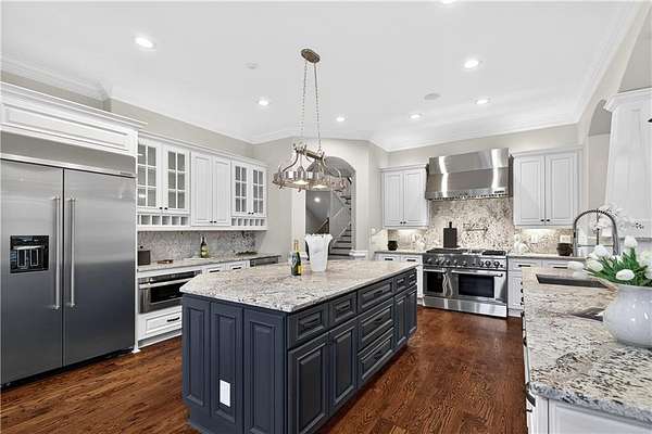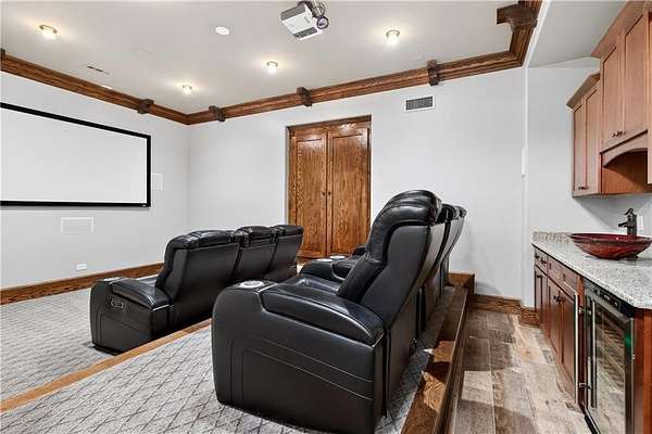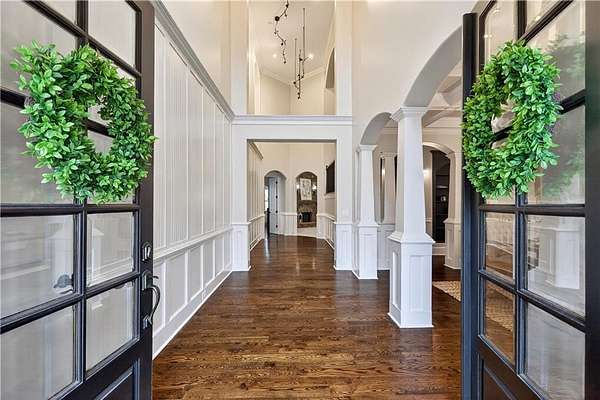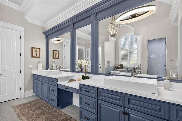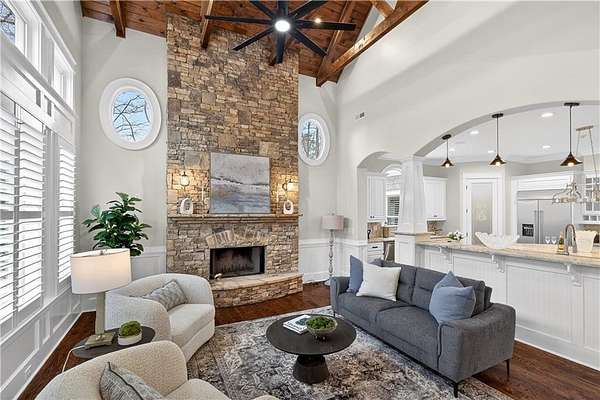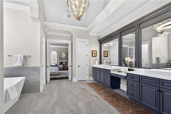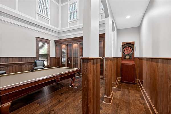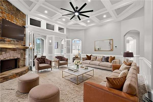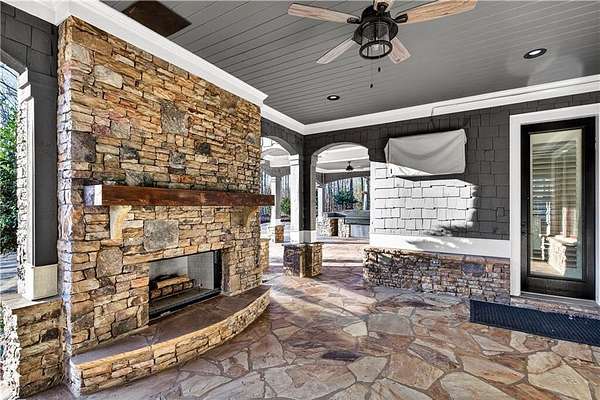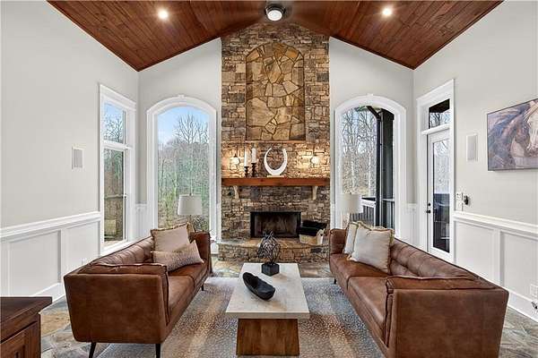 Located in the prestigious golf community in Arbor Springs, this extraordinary estate has been masterfully and extensively reimagined with thoughtful, high-end renovations throughout. Perfectly positioned on a private wooded lot within this sought-after country club setting, the home blends timeless architecture with modern luxury, refined comfort, and exceptional functionality. Every level has been meticulously updated creating a truly turnkey residence designed for elegant living and effortless entertaining. A grand two-story foyer welcomes you with soaring ceilings, abundant natural light, and exquisite architectural detailing. The formal dining room features custom built-ins and elegant trim work, flowing seamlessly into the impressive great room anchored by a dramatic stacked stone fireplace. Just beyond, a bright, and inviting sunroom with stone flooring and its own stone fireplace provides the perfect setting for evening cocktails while enjoying tranquil backyard views. Both spaces open on a covered grilling deck as well as an open-air deck, offering exceptional indoor-outdoor flow for entertaining on any scale. The chef's kitchen has been beautifully updated and designed to both impress and perform, featuring a professional-grade gas range with pot filler, expansive center island with bar seating, two preparation sinks, abundant cabinetry, and new counter tops. The adjacent keeping room showcases rustic ceiling beams and a cozy stone fireplace, creating an intimate gathering space ideal for morning coffee or relaxed evenings with guests. A thoughtfully redesigned laundry room and scullery on the main level offers built in cabinetry, a second refrigerator, washer and dryer and additional storage , serving as the perfect prep and organization space. The expansive primary suite, located on the main level, serves as a luxurious private retreat complete with intimate sitting room and stone fireplace. The custom-designed closet system is exceptional in both scale and function. The spa-inspired inspired ensuite bath has been fully renovated and features gorgeous vanities, a bar area complete with wine refrigerator, designed tile, soaking tub, and oversized shower with glass enclosure, and refined finishes throughout. Upstairs, a central hallway leads to three generously sized bedrooms, each with its own private ensuite bath, all completely updated. The upper level also includes a built in computer workstation with cabinetry. Step into another light filled bonus room perfect for hobbies or upstairs theatre but that is not it, there is and a second bonus room upstairs above the over sized the three-gar garage. Finished and unfinished knee-wall storage areas provide abundant additional space. All bedrooms feature new carpet, fresh paint, lighting and ceiling fans. The terrace level is designed for elevated entertainment and recreation. A dramatic two-story billiard room with spiral staircase and catwalk overlook , creates a stunning architectural focal point. This level also features a full bar with seating, a secondary kitchen, a dedicated display for awards, books, or memorabilia, a fireside great room, another bedroom with full bath, a FULL home gym, private home theater and an impressive WINE CELLAR. Also downstairs is another garage area perfect for the "toys". The bright open layout makes this level for hosting gatherings of any size or multi-generational living. Outdoor living is equally as exceptional. Two fully equipped cooking areas with dual 54 inch-Lynx grills and outdoor refrigeration anchoring entertaining spaces. a FULL-SIZE BASKETBALL COURT adds to the lifestyle amenities, while the private wooded backdrop provides serenity and seclusion. An invisible dog fence enhances convenience for pet owners. Extensive recent improvements include a new roof, new gutters, downspouts, and leaf guards, fresh exterior paint, new epoxy garage flooring, in the OVERSIZED three-car garage and four new Carrier HVAC'S