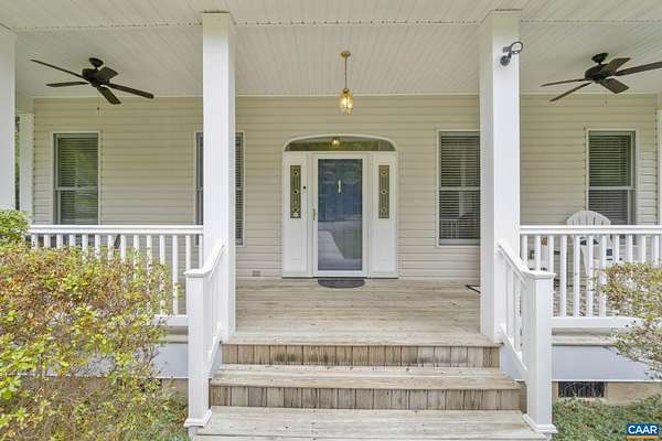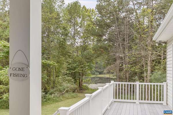 Southern Living designed home on 14 acres with woods & water views! This home was once a charming B&B! Main level living with airy 10' ceilings. Formal & informal living spaces. All bedrooms enjoy an en suite bath. Step inside from a rocking chair front porch with ceiling fans. Handsome glass French doors open to a spacious dining room and across the hall to the living room with wood burning fireplace. Chef's eat-in kitchen with SS appliances opens to a breakfast room with two walls of windows. Enjoy your water view and grilling on the elevated trex deck with staircase to an open flat yard & fenced area perfect for pets or gardening. Owners suite with sitting area,newly renovated bath & walk-in closet with custom organizers. Imagine the possibilities in the expansive unfinished basement with roughed-in plumbing. More than one door leads to the outdoors. Store your fishing poles and kayaks on one side and finish the other! Detached 2-car garage with 4 doors for easy in and out. Park your RV or boat under the carport. Whole house generator. Central vac. Fresh paint. New flooring. NEW roof (2024). Dual HVAC (one system new-2023). Water heaters (2025 & 2020). No HOA. Easy access to I-64 just 7 mi from your door!