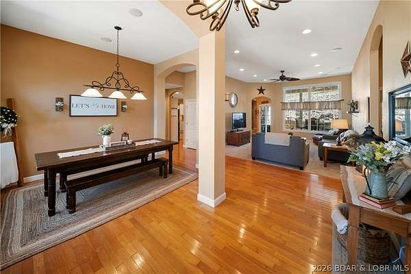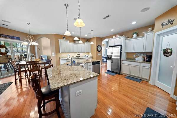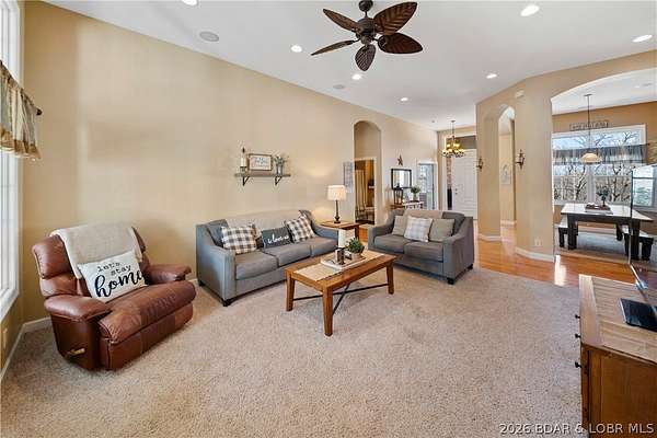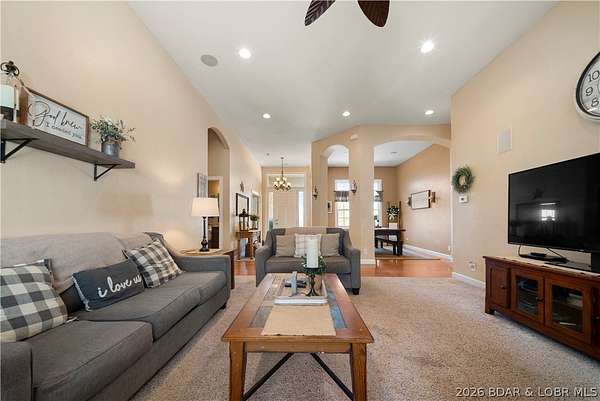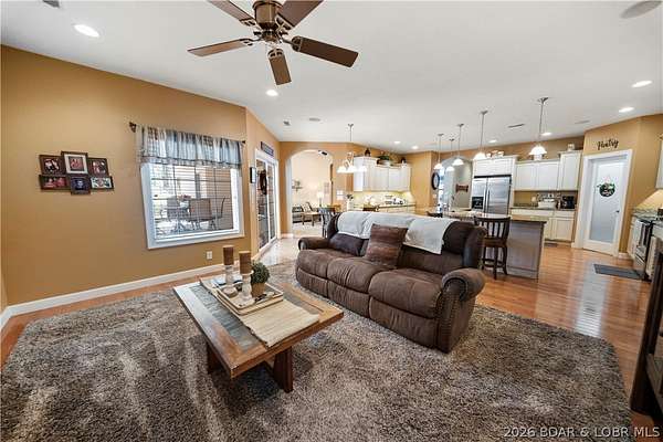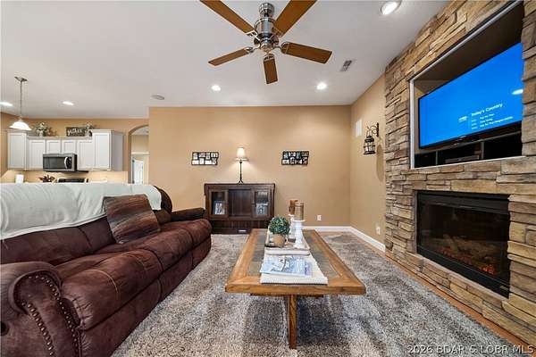 Welcome to your perfect Lake of the Ozarks retreat! This beautifully maintained 5 bedroom, 3 bathroom ranch-style home offers 3,600 square feet of comfortable living space in a peaceful neighborhood with NO HOA. Designed with both relaxation and entertaining in mind, the spacious layout features three separate family rooms, giving everyone plenty of room to gather or unwind. The large kitchen is a true centerpiece, complete with a bar top for casual seating and a pantry for added storage. Step outside to enjoy the cozy patio-ideal for sipping your morning coffee while taking in the serene surroundings and lake views. The home also boasts beautiful curb appeal and a storage shed for all your extra needs. Located just minutes from the Bagnell Dam Strip, you'll have quick access to dining, shopping, and entertainment while still enjoying the quiet side of the lake. Whether you're a first-time homebuyer or looking for a family-friendly space to grow, this move-in ready home checks all the boxes. Come experience the charm, space, and convenience this property has to offer!