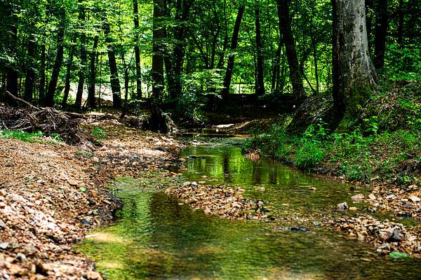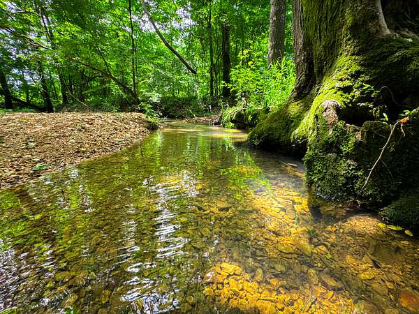 The land features a predominantly level topography, offering multiple ideal building locations that can accommodate a variety of home designs or development layouts. A picturesque creek meanders through the property, eventually flowing into the beautiful Tennessee River, adding a serene natural feature and enhancing the land's overall appeal.