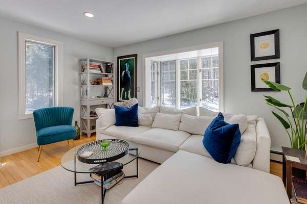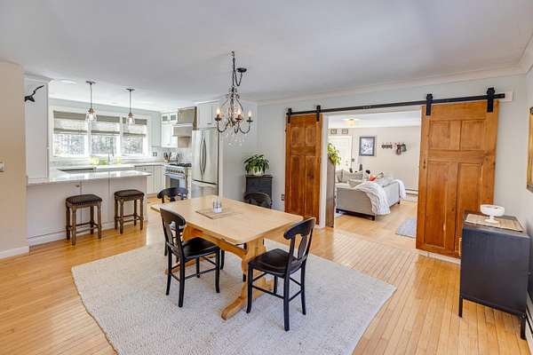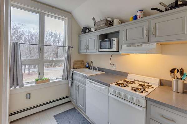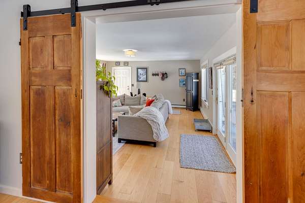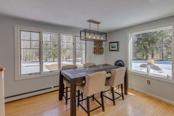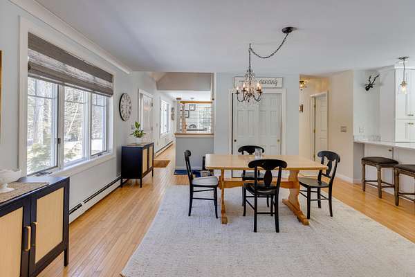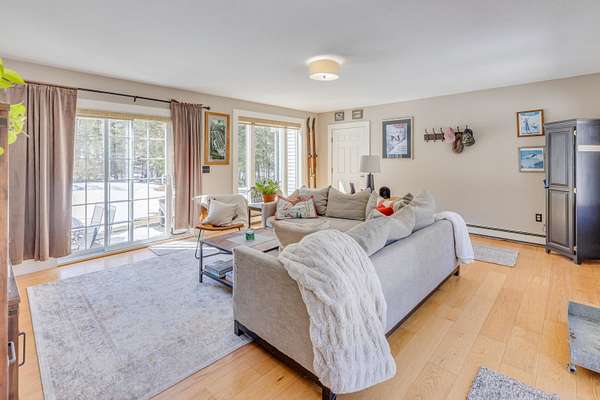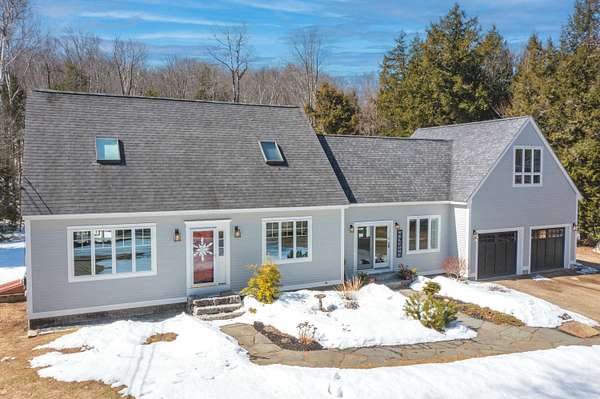 Located in a desirable part of Campton, just off the mountain views of Ellsworth Hill Rd. sit's this charming and modern Cape style home on over 2 acres of land. Beautiful level lot, complete with a spring fed pond toward the back, and a private wooded buffer. Upon entering into the driveway you are greeted with curb appeal and pride of ownership. Currently configured as a 2 bedroom 2 bath main home with the 2 car garage, and attached 1 bedroom 1 bath apartment with a private entrance, offering flexibility for rental income as a primary residence, or as a second home/investment property. Easily convert the in-law into a dream primary suite! Extensive and tasteful renovations were done over the years including a new kitchen, back deck, flooring, fireplace, exterior doors, EV charger, among many others! The main level has an inviting floor plan, entering through the family room, you continue toward the open dining area and kitchen. There is a full bath and laundry on the main level, as well as stunning living room with large exposed windows letting in the natural light. Upstairs you will find 2 bedrooms, updated full bathroom, and an additional flex place ideal for guests, or a home office. There is a lockout interior door that leads to the apartment space allowing for interior, and exterior access to the in-law from the back deck. The apartment, which was renovated in 2018, has a large bedroom and open living room, which leads to a complete kitchen and full bathroom. The location is ideal, just 5 minutes off of I-93, and quick access to Waterville Valley and Loon Mtn for skiing, and at the footsteps of the White Mtn National Forest for hiking and other recreation. Shopping, hospitals, Plymouth State University, and other amenities are just 10 minutes away, and only a 2 hour drive from Boston. Come experience the mountain lifestyle with year round opportunity!