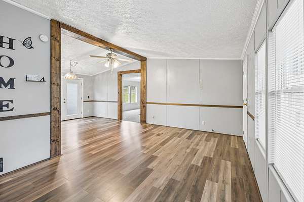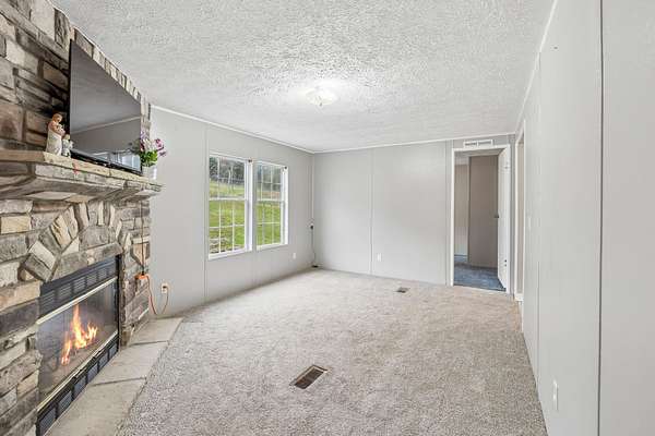 Est $1,779/mo13.37 ares with a 1440 sq ft, 4BD/2BA Double Wide home with a permanent foundation. It's approx. 500’ feet away from the main road for privacy. Exterior- has Wonderfully place stone work. Open concept kitchen with nook & formal dining rooms, living room, family room with a New Stone fireplace, all appliances remain, vaulted ceilings, front covered deck & open back decking. Newly painted walls. Home was used as a mini farm with Cows, Chickens, Goats, Lambs. There is room for expansion with no restrictions. Approx 63 miles from Nashville, TN.
