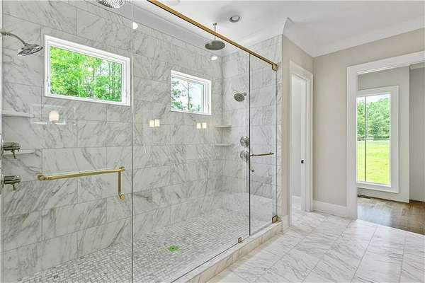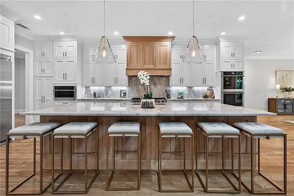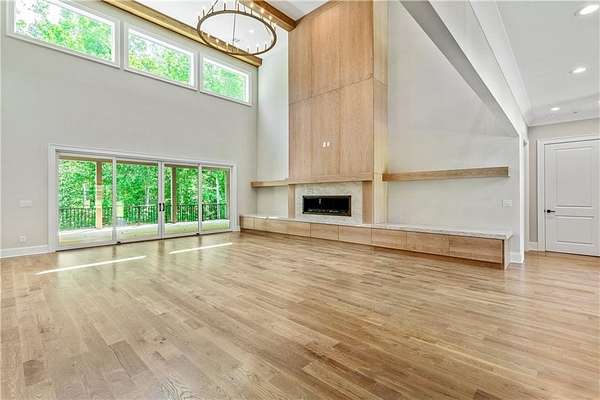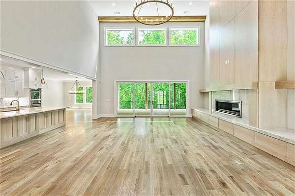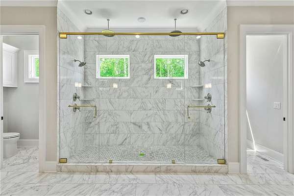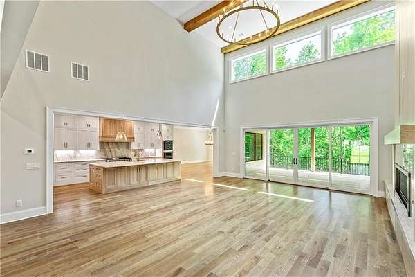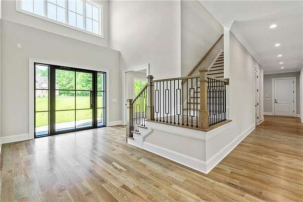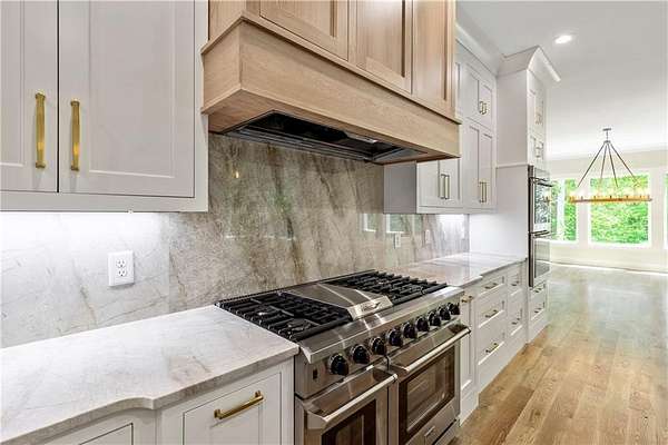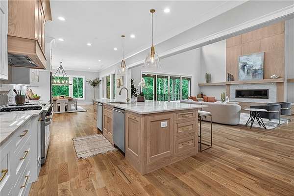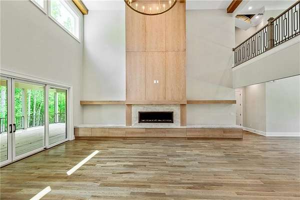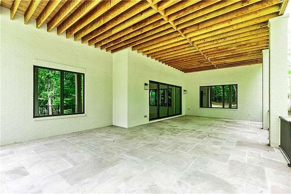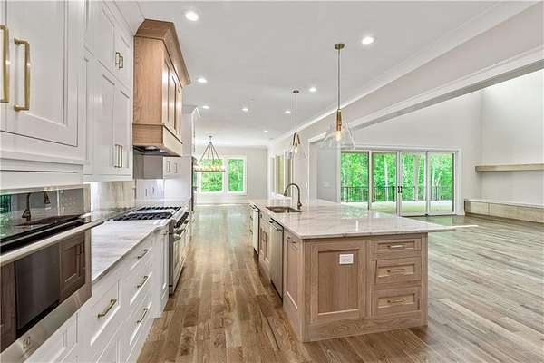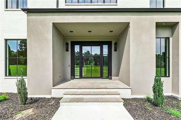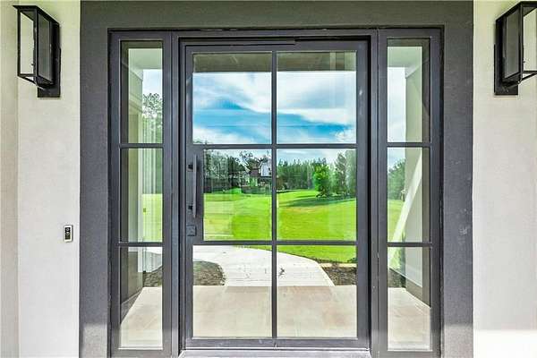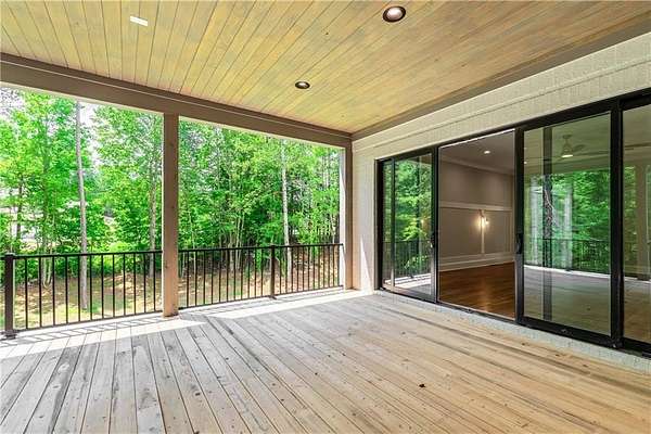 Welcome to this stunning new construction custom home crafted by Abernathy Custom Homes and perfectly situated on 1.78 acres in the prestigious Arbor Springs community of Newnan. This thoughtfully designed residence offers over 5,400 square feet of luxurious living space with five bedrooms and five and a half bathrooms, blending timeless craftsmanship with today's modern functionality. From the moment you arrive, the all-brick exterior and covered front entry create a grand and lasting impression. Step inside your custom front doors to a soaring foyer and discover an open, light-filled layout that flows seamlessly from one space to the next. The heart of the home is the extraordinary gourmet kitchen, designed with both everyday functionality and upscale entertaining in mind. Outfitted with premium Electrolux appliances, this space features an oversized gas range with eight burners and a center griddle with double ovens, a custom vent hood, a built-in wine fridge, a large side-by-side refrigerator and freezer, built-in microwave, and two dishwashers for maximum convenience. The expansive island offers ample seating and prep space, while lower cabinets are thoughtfully designed with abundant drawer storage for practical use without sacrificing style. Privately tucked behind the main kitchen is a hidden prep kitchen, complete with pantry space, additional cabinetry, an extra sink, and two beverage refrigerators-perfect for catering, entertaining, or keeping everyday clutter out of sight. Every detail has been considered to elevate this kitchen to a true chef's dream and a showpiece for the home. The living room is breathtaking, featuring soaring vaulted ceilings that create an airy, open feel and draw your eye upward to the dramatic wood-accented fireplace wall, which extends all the way to the ceiling for a bold architectural statement. Custom built-in storage with sleek drawer systems lines the wall beneath the fireplace, blending style with functionality. A full wall of sliding glass doors spans the rear of the living room, flooding the space with natural light and providing seamless access to the expansive back patio. From here, you'll enjoy peaceful views of the wooded landscape beyond-offering a private, picturesque backdrop that feels like your own retreat. The main level also includes a formal dining room, a flex space ideal for a home office, den, or playroom, a large laundry room with built-in space for lifted front loading appliances, and abundant cabinet and storage space. You'll also find a guest suite, tucked privately at the back of the home with it's own private ensuite with beautiful tiled shower. The luxurious owner's suite provides a private retreat with spa-like features including a frameless glass shower with multiple shower heads and space and plumbing to add in a soaking tub if desired, dual vanities with abundant cabinet space, and a generous walk-in closet ready for your total customization, courtesy of the builder. Upstairs, each of the secondary bedrooms is oversized with its own en suite bath and walk-in closets with custom shelving, offering comfort and privacy for family or guests. High-end finishes abound throughout the home, including white oak wide-plank hardwood flooring, designer tile, upgraded lighting, detailed millwork, and coffered ceilings that add depth and character to every room. Beyond the beautifully finished living space, this home presents exciting opportunities to personalize even further. The expansive unfinished terrace level offers room to create a custom basement with a home theater, fitness studio, bar, guest suite, or additional living space. It features 12 foot ceiling and a plumbed in bath, ready for your own ideas. Located in Northgate school district and close to golf, shopping, and dining, this exceptional home offers a rare combination of luxury, customization, and location.