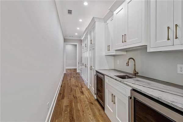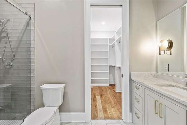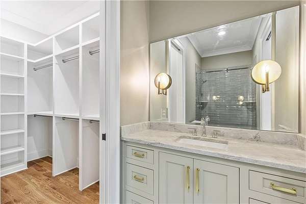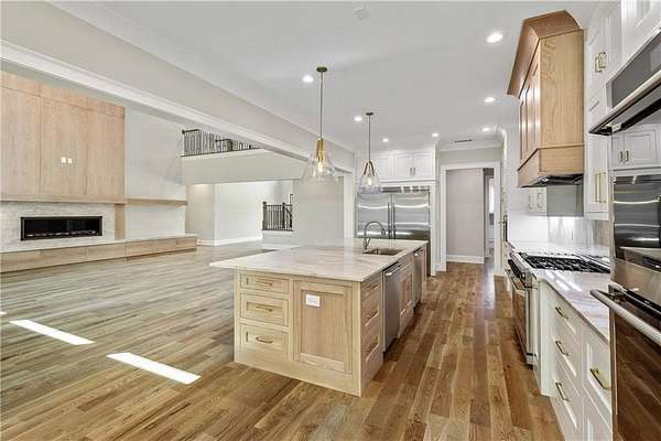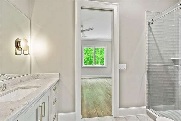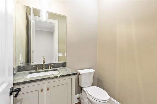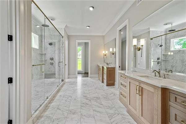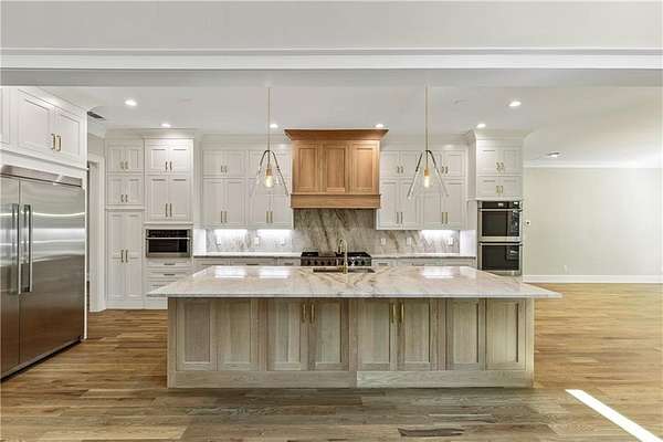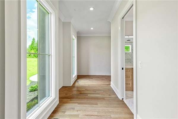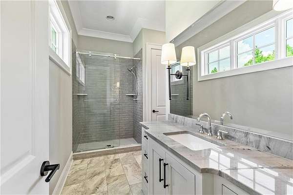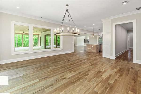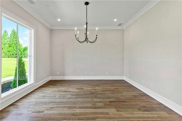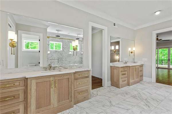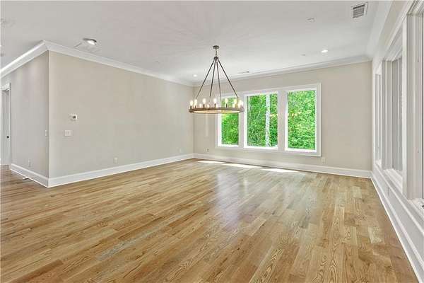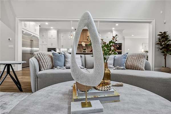 Welcome to this stunning new construction custom home crafted by Abernathy Custom Homes and perfectly situated on 1.78 acres in the prestigious Arbor Springs community of Newnan. This thoughtfully designed residence offers over 5,400 square feet of luxurious living space with five bedrooms and five and a half bathrooms, blending timeless craftsmanship with today's modern functionality. From the moment you arrive, the all-brick exterior and covered front entry create a grand and lasting impression. Step inside your custom front doors to a soaring foyer and discover an open, light-filled layout that flows seamlessly from one space to the next. The heart of the home is the extraordinary gourmet kitchen, designed with both everyday functionality and upscale entertaining in mind. Outfitted with premium Electrolux appliances, this space features an oversized gas range with eight burners and a center griddle with double ovens, a custom vent hood, a built-in wine fridge, a large side-by-side refrigerator and freezer, built-in microwave, and two dishwashers for maximum convenience. The expansive island offers ample seating and prep space, while lower cabinets are thoughtfully designed with abundant drawer storage for practical use without sacrificing style. Privately tucked behind the main kitchen is a hidden prep kitchen, complete with pantry space, additional cabinetry, an extra sink, and two beverage refrigerators-perfect for catering, entertaining, or keeping everyday clutter out of sight. Every detail has been considered to elevate this kitchen to a true chef's dream and a showpiece for the home. The living room is breathtaking, featuring soaring vaulted ceilings that create an airy, open feel and draw your eye upward to the dramatic wood-accented fireplace wall, which extends all the way to the ceiling for a bold architectural statement. Custom built-in storage with sleek drawer systems lines the wall beneath the fireplace, blending style with functionality. A full wall of sliding glass doors spans the rear of the living room, flooding the space with natural light and providing seamless access to the expansive back patio. From here, you'll enjoy peaceful views of the wooded landscape beyond-offering a private, picturesque backdrop that feels like your own retreat. The main level also includes a formal dining room, a flex space ideal for a home office, den, or playroom, a large laundry room with built-in space for lifted front loading appliances, and abundant cabinet and storage space. You'll also find a guest suite, tucked privately at the back of the home with it's own private ensuite with beautiful tiled shower. The luxurious owner's suite provides a private retreat with spa-like features including a frameless glass shower with multiple shower heads and space and plumbing to add in a soaking tub if desired, dual vanities with abundant cabinet space, and a generous walk-in closet ready for your total customization, courtesy of the builder. Upstairs, each of the secondary bedrooms is oversized with its own en suite bath and walk-in closets with custom shelving, offering comfort and privacy for family or guests. High-end finishes abound throughout the home, including white oak wide-plank hardwood flooring, designer tile, upgraded lighting, detailed millwork, and coffered ceilings that add depth and character to every room. Beyond the beautifully finished living space, this home presents exciting opportunities to personalize even further. The expansive unfinished terrace level offers room to create a custom basement with a home theater, fitness studio, bar, guest suite, or additional living space. It features 12 foot ceiling and a plumbed in bath, ready for your own ideas. Located in Northgate school district and close to golf, shopping, and dining, this exceptional home offers a rare combination of luxury, customization, and location.